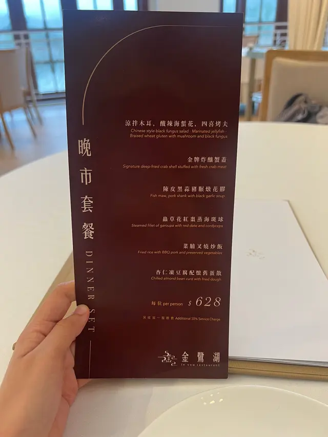 食物美味高質又特別😋😋仲有湖景相伴🏞️令人愉悦既一天1. 酸辣海蜇頭 🤩🤩💰168waitress 話可以轉陳醋,但既然有酸辣咁特別就梗係試下啦。上菜個賣相不錯似魷魚花,一啖咬落去,酸辣適中超開胃,再配以爽爽既口感,為呢一個午餐帶來美好既開始2. 松露醬蔥香素鵝 💰$78初時以為同出面餐廳一樣係齋腐皮既素鵝😍,上菜時成碟腐皮卷咁有d 失望。。點知食落有驚喜,咬落去外皮夠脆,裡面既餡料菇味超香,有d 木耳令口感更爽脆,好好味🤤唯獨黑松露醬太少,只有面頭2件先有,下次一定會再點👍🏻👍🏻3. 玫瑰金蝦餃 💰$78賣相好貼題,金金紅紅,與別不同😂, 鮮蝦夠爽口,外皮又夠薄,不過下次會試下特別d 既點心4. 酸菜鱈魚春卷 💰$78因我鐘意食酸菜魚,酸菜魚平時都係湯上,濕立立又點搭配春卷?🤔見到呢個點心咁特別,即刻點黎試下。外表同一般春卷係一樣既😆點之一咪咬落去,好多甜酸菜同魚肉😍配埋外面脆脆既春卷皮,真係不得了,無諗酸菜魚可以咁乾身😆食完一件你會忍唔住食晒成碟😋😋必食推介🥳5. 鱘魚子燒賣 💰$78外表比一般黃色既燒賣深色, 鱘魚子响面搭配將味道昇華咗,足料同好大粒👍🏻👍🏻不過同蝦餃一樣,下次會試其他款式6.脆脆鮮蝦紅米腸 💰$78戀粹見隔離枱食又叫黎試下。。果然不錯,脆脆同爽既鮮蝦再配以腸粉皮既黏糯,口感超豐富,好食👍🏻👍🏻🤩7. 金牌炸釀蟹蓋🤩🤩🤩 💰$178果然係金牌同signature 👍🏻賣相已經一流, 食落蟹肉超多,面又帶d 脆炸感,朋友連個蟹蓋殼都唔放過😆😆8. 生磨蛋白杏仁茶 💰$62 見好多叫楊枝甘露同芝麻卷,但已好飽。。。所以㨂個簡單d 既甜品。結果。。。又係超好食🤤🤤咁普通既杏仁茶,佢裡面有超多蛋白,無yroi過杏仁茶都有咁豐富既口感😆下次都係必食既推介👍🏻👍🏻P.S :適合駕駛既朋友,無揸車既都可以响大埔墟火車站搭free 既shuttle bus …查看更多