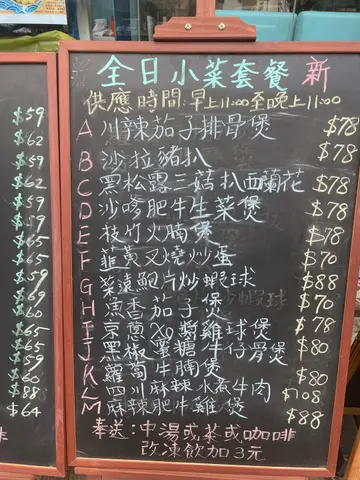 今日11点28分叫嘢食,我坐喺一张12 F号嘅枱叫咗一个早餐嘅包片火腿通粉配餐肉炒蛋跟多士,另外再叫一个榨菜肉丝米粉配肠仔炒蛋多士,然后我见到有卡位所以就带住小朋友搬咗过去卡位,并且同员工讲我调咗位,坐咗一阵两个面已经到齐亦都食咗个面15分钟,两个餐嘅多士炒蛋同肠仔餐肉都仲未到,已经问职员可唔可以帮我问一问厨房究竟仲要等几耐,职员会问都冇问就答我厨房已经整紧,但系隔离枱个伯伯迟黎先上岸,迟过我入嚟嘅啲嘢食都到齐,系咪因为熟客就所以快啲普通食客就需要等成几个字先至出齐?最后仲要唔小心将我杯咖啡整跌,搞到我成身都系咖啡!两个餐加埋一个80一蚊但系我叫嘅食物并冇黎齐!