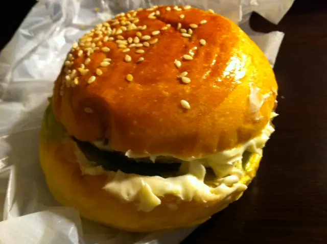 我好鐘情豬柳漢堡包, 除左M記之外唔係間間麵包店都有得買, 有既話味道又唔算好味.經過此麵包店見到有豬柳漢堡包更係要試下.一塊豬柳扒略為煎過再加入生菜絲及大量沙律醬, 生菜絲都新鮮爽口而沙律醬應該自家略為調味帶點甜, 只是我縑醬太多.而麵包夠鬆軟再加上面層白芝麻更增添香口, 這一店既豬柳漢堡味道都算唔錯.查看更多