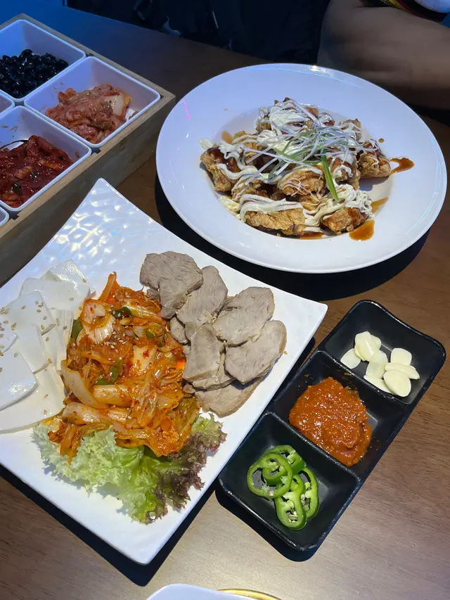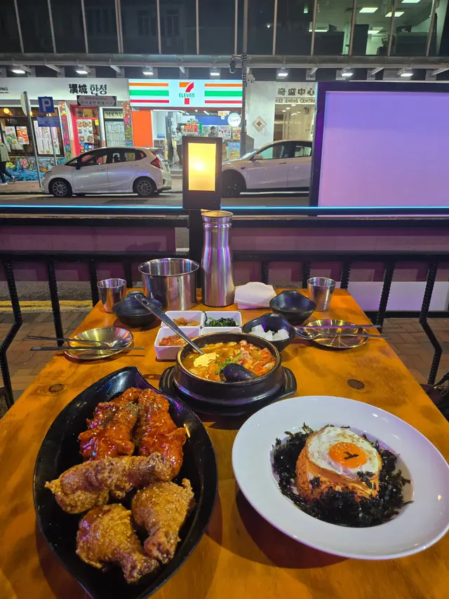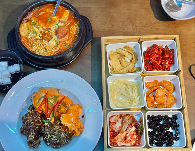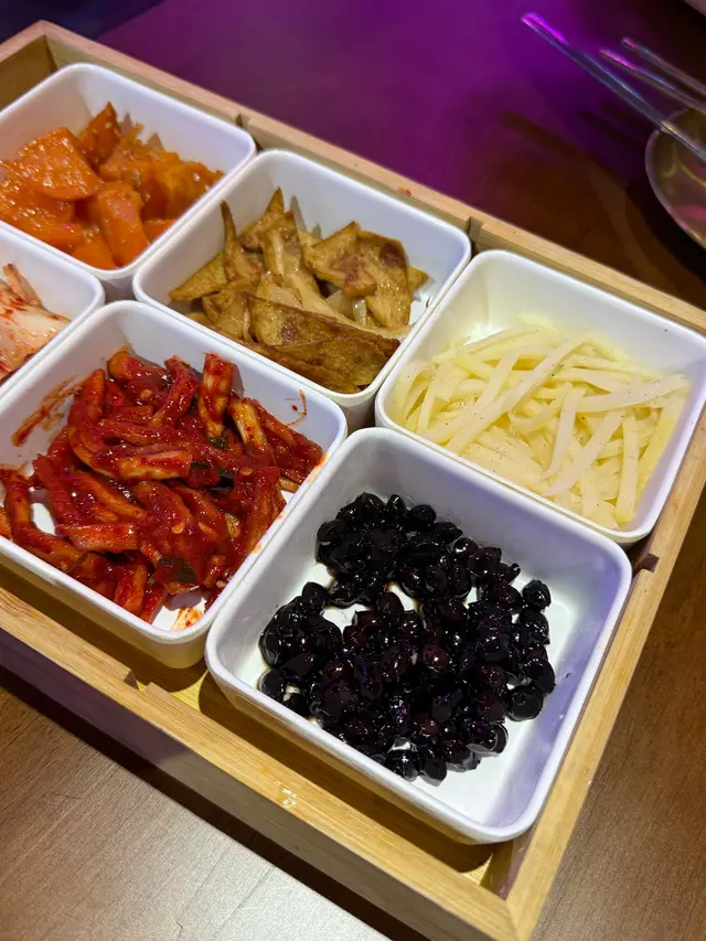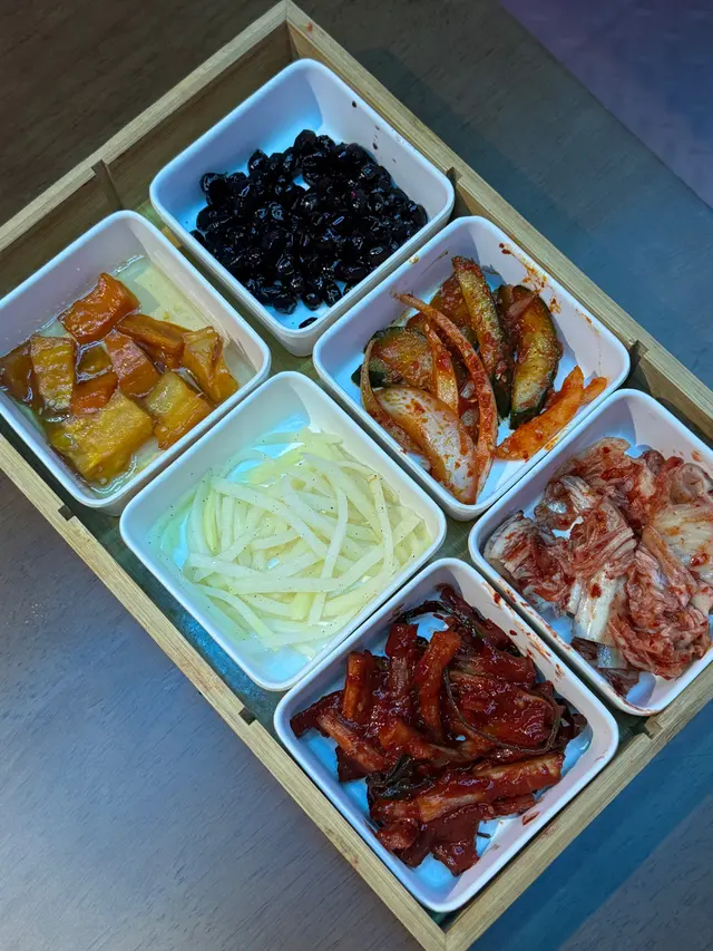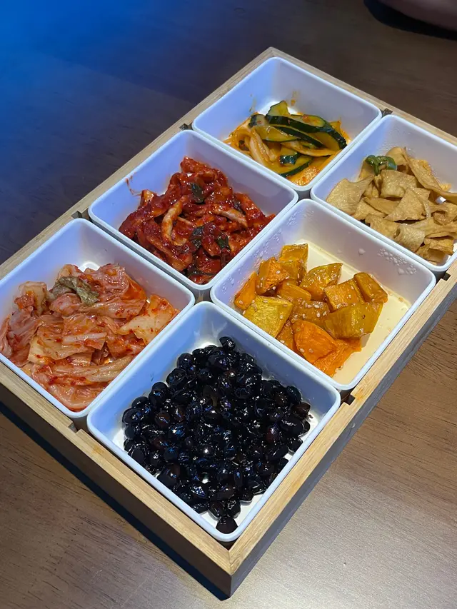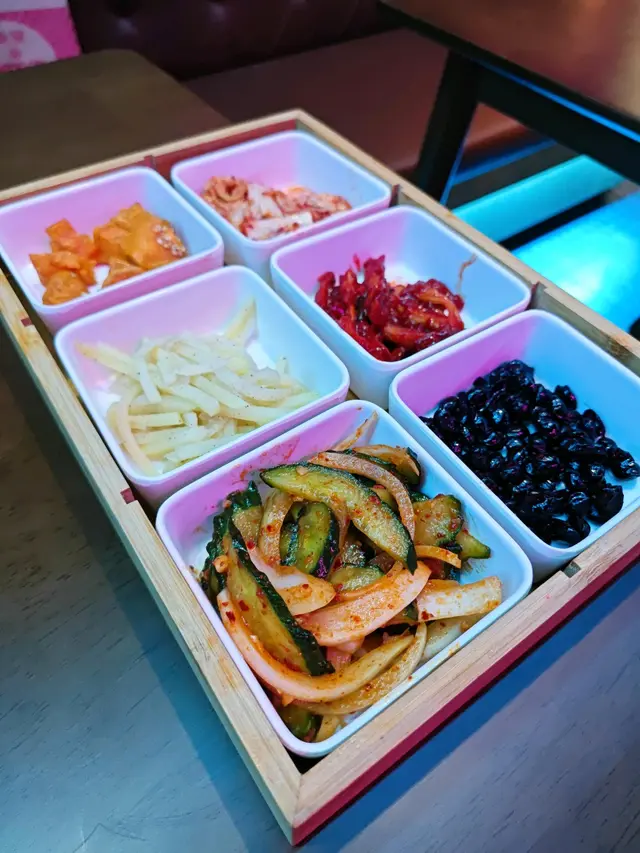 約咗朋友嚟釜山商會食飯,朋友細食我又唔肚餓,於是叫一主食一小食~一坐低店員就上6款前菜,超貼心🤣!店內環境好有氛圍,韓國人店員多,感覺幾正宗韓式風味,坐得舒服~睇見menu見到辣「章三蝦」一人鍋,外貌超吸引!🦑章魚好大隻吸睛,仲有蝦同豚肉,章魚煙韌彈牙,湯底係用韓式泡菜+辣醬熬製而成,望落開胃,但食落稍為淡左少少,豚肉片好多有少少肥膩,辣度係小辣。另外迷你韭菜海鮮煎餅,size對女仔超友好,外皮煎得乾脆金黃,煎餅足料每啖韭菜香氣爆發,海鮮鮮甜,配韓式醬汁一流,脆口過癮😋…查看更多