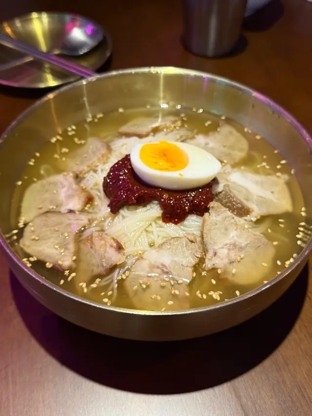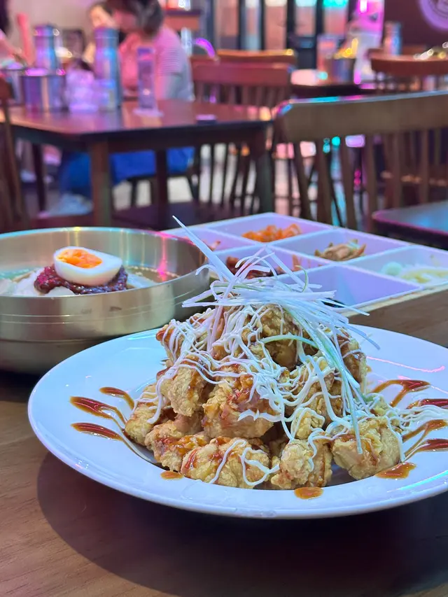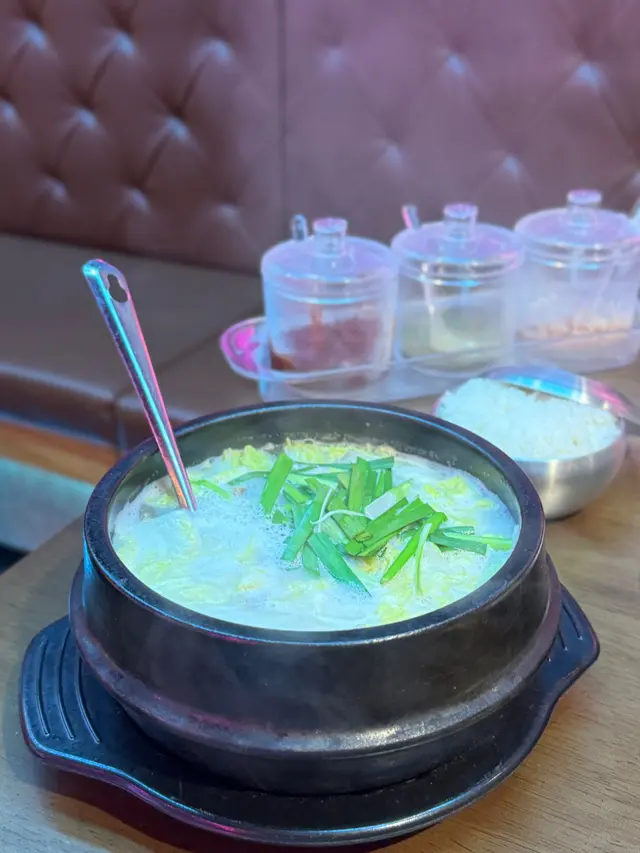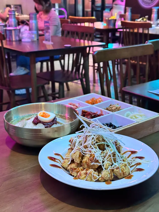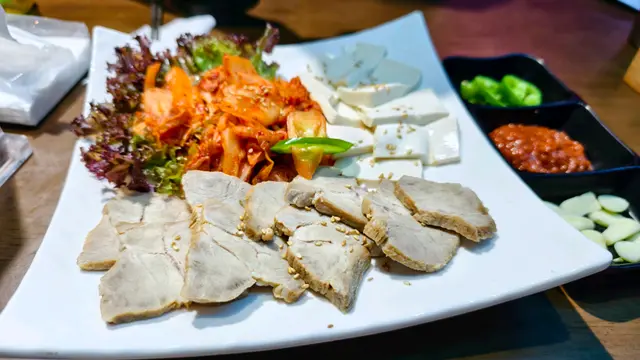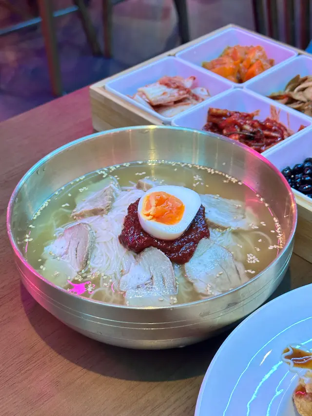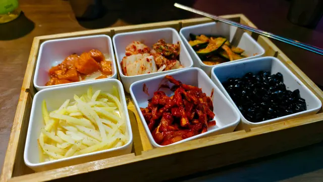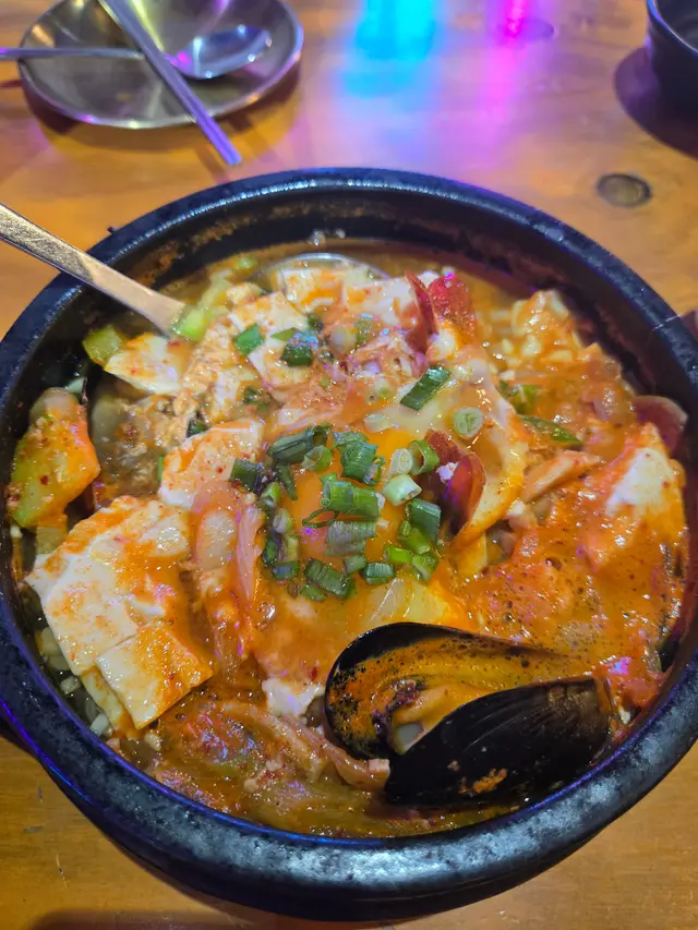 約咗朋友嚟釜山商會食飯,朋友細食我又唔肚餓,於是叫一主食一小食~一坐低店員就上6款前菜,超貼心🤣!店內環境好有氛圍,韓國人店員多,感覺幾正宗韓式風味,坐得舒服~睇見menu見到辣「章三蝦」一人鍋,外貌超吸引!🦑章魚好大隻吸睛,仲有蝦同豚肉,章魚煙韌彈牙,湯底係用韓式泡菜+辣醬熬製而成,望落開胃,但食落稍為淡左少少,豚肉片好多有少少肥膩,辣度係小辣。另外迷你韭菜海鮮煎餅,size對女仔超友好,外皮煎得乾脆金黃,煎餅足料每啖韭菜香氣爆發,海鮮鮮甜,配韓式醬汁一流,脆口過癮😋…查看更多