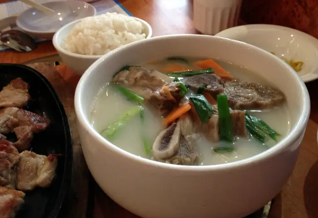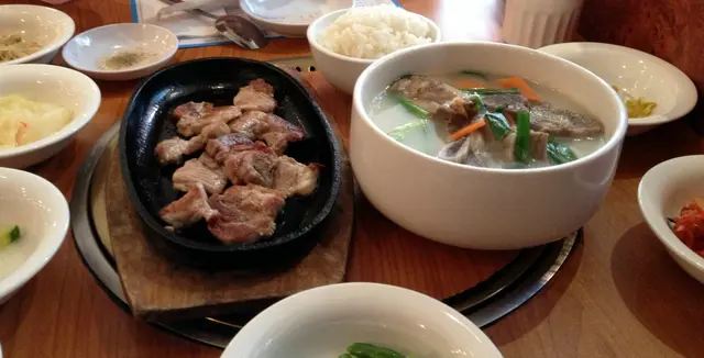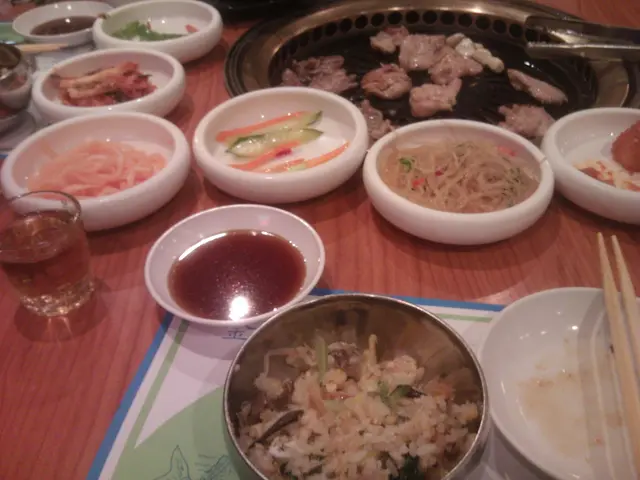 工作天的下午二時,一羣白領離開後,餐廳只餘下一、兩枱客人。我們二人各點了set lunch: 炆牛肋骨及清湯餃子。好:大而厚切的牛肋骨十分「淋」及入味,與蘿蔔等配料填滿整個鍋,午餐的份量夠男士充飢有餘。熱騰騰的,不但熱到勁出煙,食物在鍋內還在滾,令人垂涎!餃子雖然皮厚但有肉香,配以清湯。相信沒怎樣用味精,因為我沒有吃完味精餐的反應(臉及手會麻痺)。可以好些:不知是否因為是午餐所以「隨便」些吧,餐具是中式白色膠筷子,匙羹是普通西式而不是韓式直身的,風味欠奉。茶壺內的茶,只是微暖。舊店風味,韓國夫婦店主與客人沒甚麼眼神接觸或微笑,店員的服務反而好些。總的而言,好味,可以考慮試晚餐。…查看更多