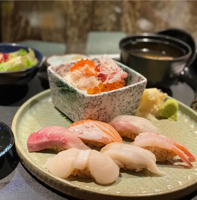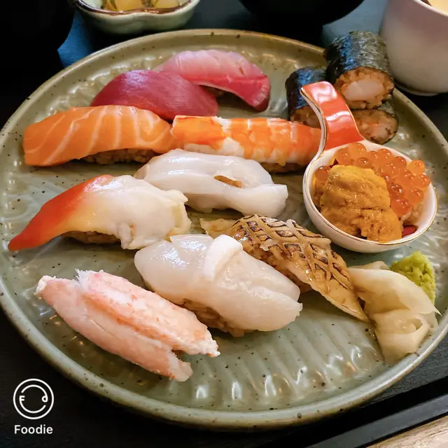 每晚返觀塘studio都會叫外賣,諗住做野咁辛苦食下好野對自己好啲,叫左個$228既特上雜錦魚生丼,見個圖都幾吸引,個圖就有牡丹蝦、三文魚、油甘魚、吞拿魚、鱆紅魚、帶子每樣兩片、仲有海膽同三文魚籽,諗住收得呢個價錢就算圖片只供參考都唔會差得去邊
