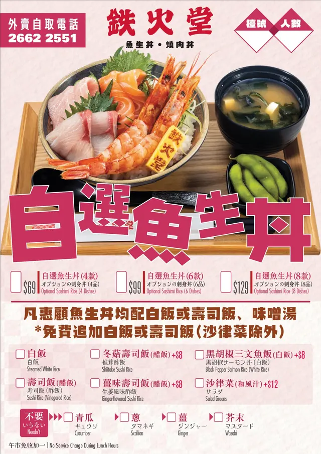 鉄火堂 (厚福街) (尖沙咀) 网址: https://s.openrice.com/QrLS0pkm700 地址: 香港尖沙咀厚福街10號地舖 电话: +852 26622551