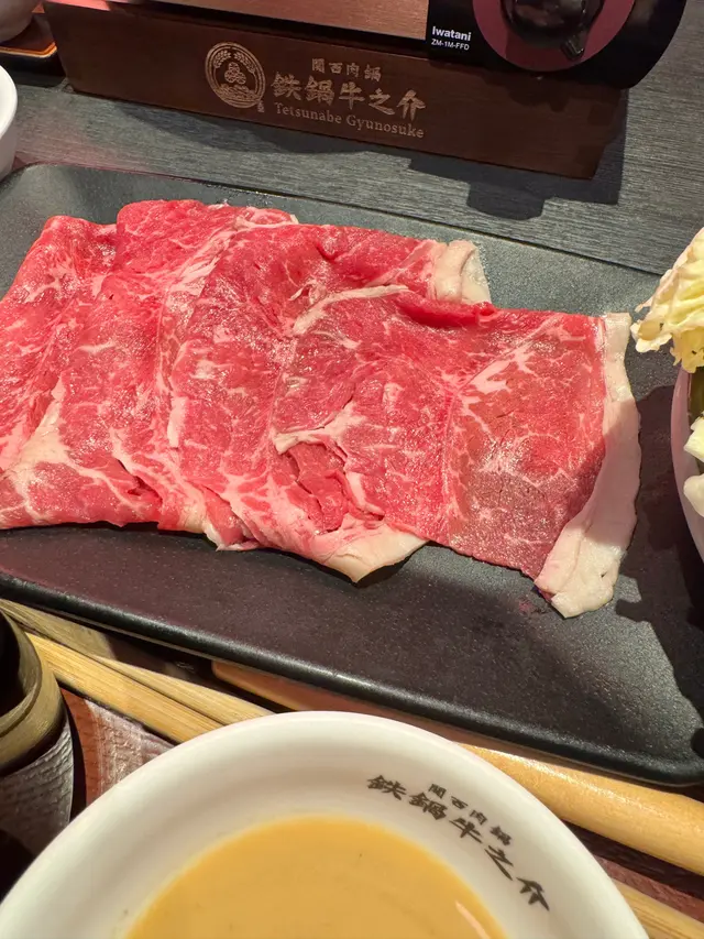 Yoho Mall 有間新店叫鉄鍋牛之介,主打一人日式火鍋,見到Lunch menu 都有好多選擇,所以就去入去試吓今次我哋叫咗香港比較少見的壽喜燒,中等價錢,佢哋既食法係先用牛脂沾鍋後,放牛肉下去煎,之後才開始落壽喜燒汁和沙糖,然後慢慢調味。此食法屬關西地區獨有,有別於關東壽喜燒食法,枱面有張咭紙教大家點食,加分。Set lunch 包一碟牛肉,蔬菜,前菜,白飯和雞蛋,牛肉有一定厚度,蔬菜份量亦都足夠。我跟足指示,先將牛脂在鍋底燒香,放牛肉,後加醬汁和糖調味,再點雞蛋食。牛肉雖然唔係和牛,但都好嫩滑,個人覺得食壽喜燒係唔需要配和牛,反而配美國牛就恰到好處,食完一片牛肉之後,再輪流將其他牛肉和蔬菜煎煮,最後倒入醬汁,食材盡吸濃甜惹味的汁醬,加上雞蛋,白飯,簡直係完美配搭。餐廳除了壽喜燒外,還提供豚肉鍋,一人一鍋,迎合唔食牛嘅你。下次唔駛再等去日本,都可以食到壽喜燒啦,開心。查看更多
