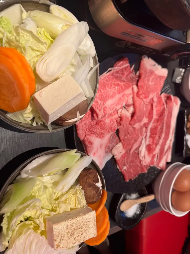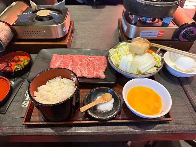 又係去唔到日本食嘢要係香港止癮系列,咁啱見到商場新開左間壽喜燒,梗係衝去食返餐止下癮!鋪頭新開裝修行黑色主調,座位都幾多,唔使點等位就入到去。每個座位都備有一個gas爐,因為除左壽喜燒外,佢都主打shabu shabu火鍋,一人一鍋就啱哂我呢啲獨行客啦第一次來食當然食個最好既,點左個A4和牛肉眼壽喜燒套餐,包括120G和牛,雜菜盛,白飯連牆菜,當然唔少得壽喜燒靈魂,日本蛋!牛肉望落都幾靚,接下來就係展示廚藝既時間,跟住餐廳指示開始煮!不過個壽喜燒汁食到後面有點過甜,牛肉份量有啲少,以200幾蚊仲要加一就唔係幾抵食。查看更多