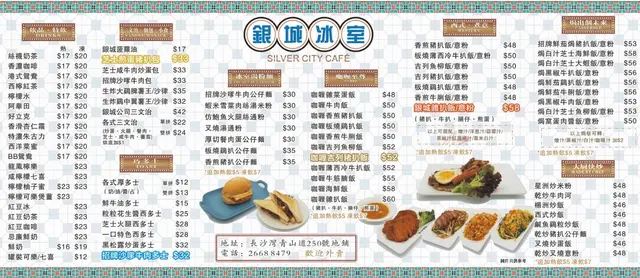銀城冰室 (长沙湾) 网址: https://s.openrice.com/QrLS0ZzC4W0 地址: 香港長沙灣青山道250號地舖 电话: +852 26688479