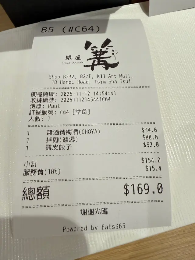 銀座 篝 (尖沙咀) 网址: https://s.openrice.com/QrLS0jny7W0 地址: 香港尖沙咀河内道18號K11購物藝術館B2樓B232號舖