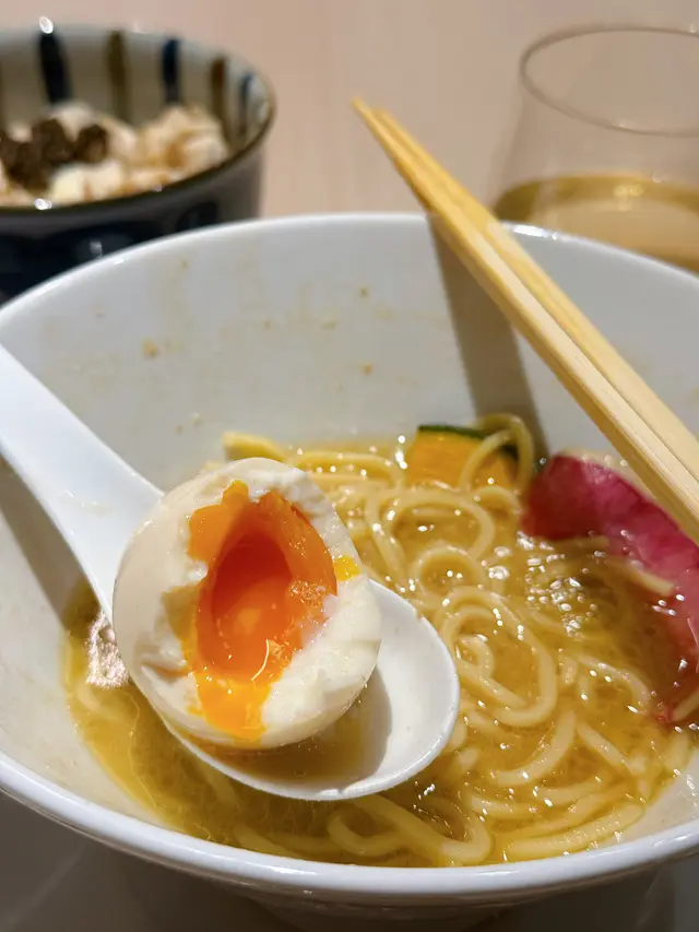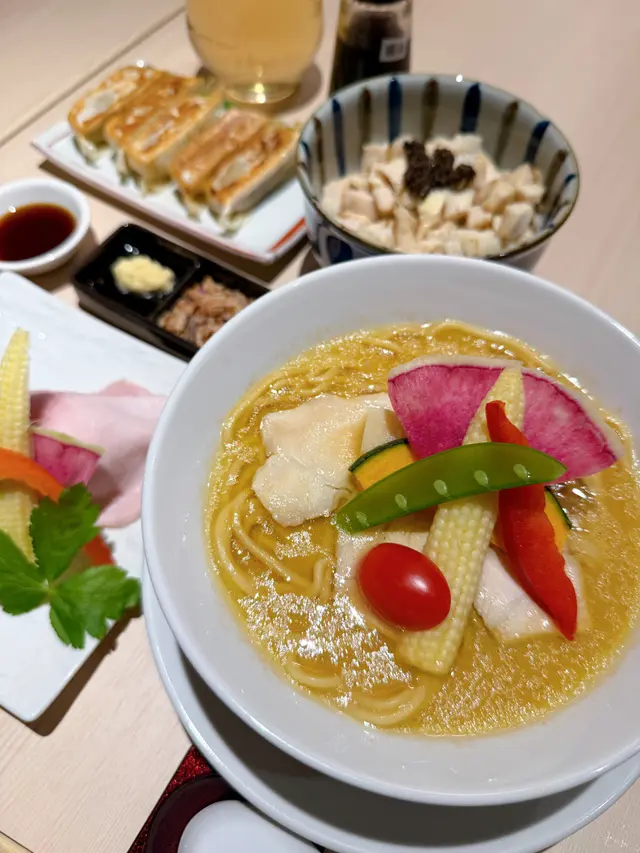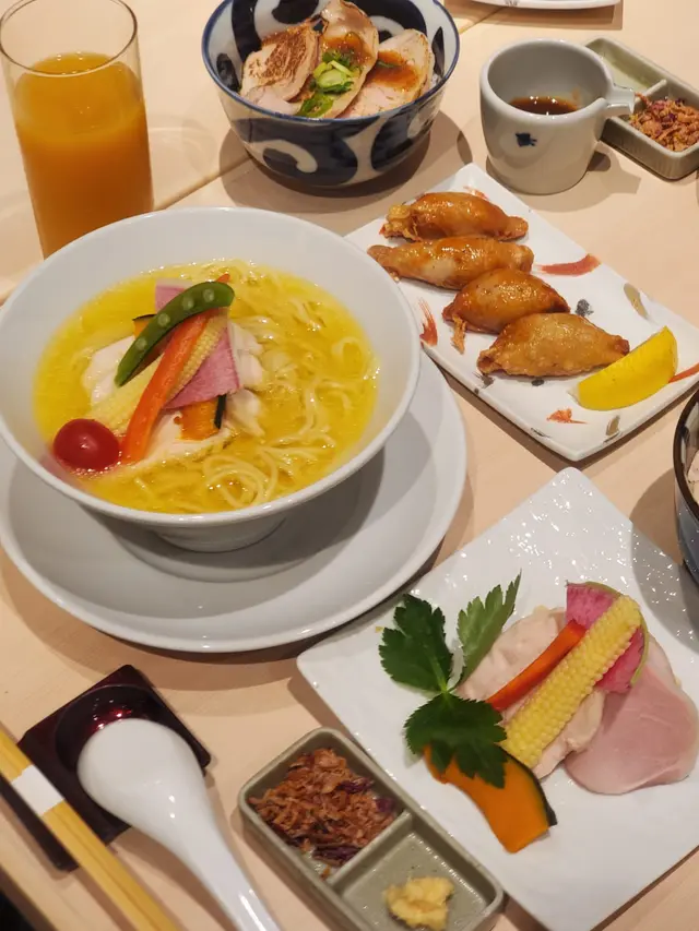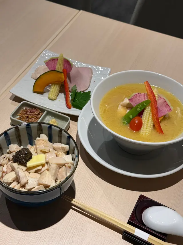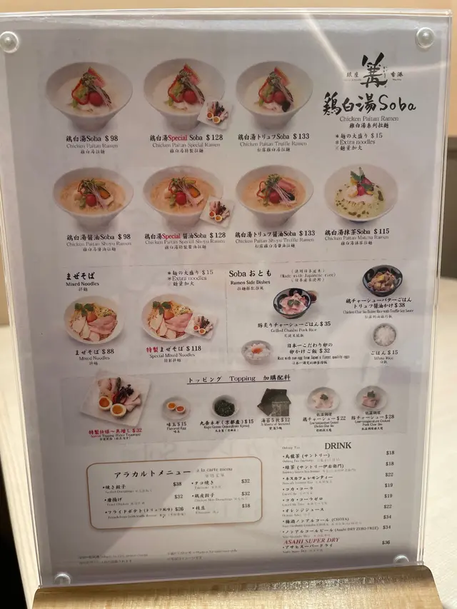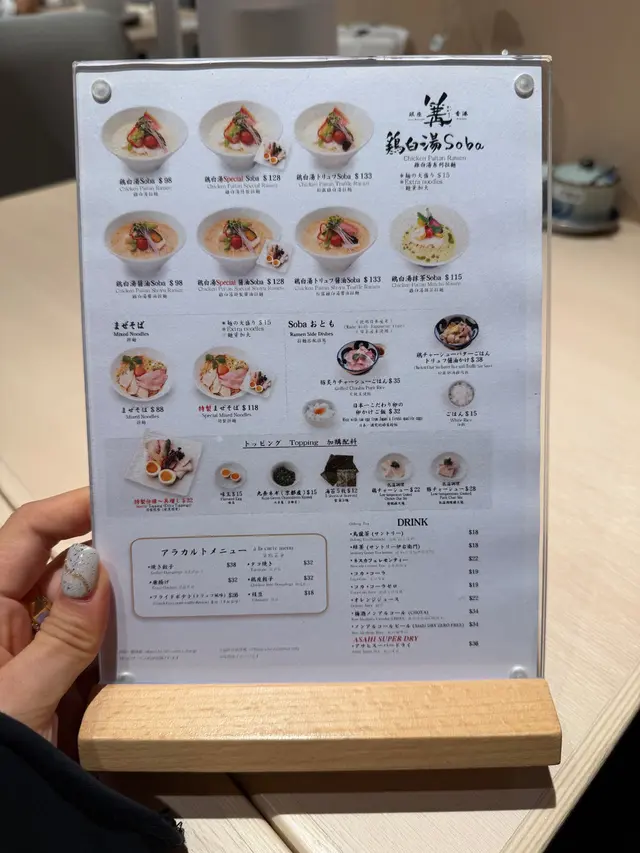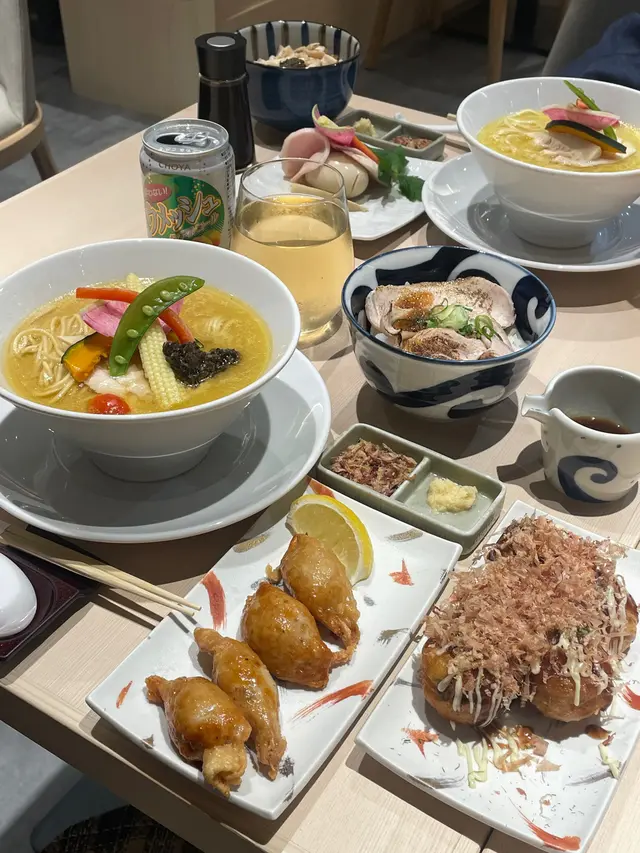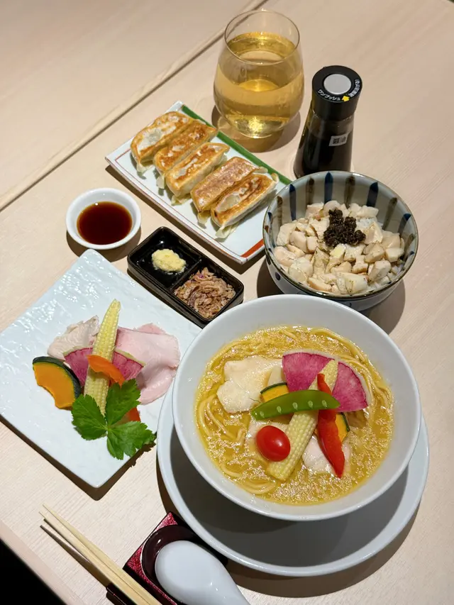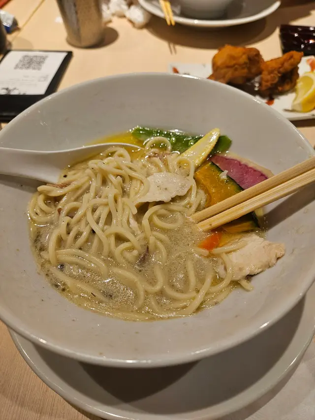 雞白湯特製拉麵湯底:雞湯味濃郁。相對於坊間有d 比較奶味嘅湯底,呢個嘅雞味相對重一啲,似係傳統雞湯但呈現杰身濃稠嘅質地。另外佢多咗一層油喺面,令到味道再濃郁一點,如果怕油嘅朋友就可能有啲介意。麵條:正常日本生麵嘅味道,份量頗多。食到最後都冇咩鹼水味係個湯到。材料:特製套餐比起普通餐多左一碟配菜。有兩片雞肉,一件比較嫩滑,一件正常水準。唔鞋口但又未去到好嫩滑好驚喜嘅地步。🤔松露雞白湯醬油拉麵湯底 : 松露味係非常充足,濃郁到完全遮蓋左雞白湯嗰種鮮甜嘅雞味,淨係飲到好似忌廉黑松露汁咁樣。我原本以為係雞湯味為主,再帶少少松露增添多一點層次,但係而家松露嘅味道完全over power咗。本身個味道唔差,但就冇雞湯味。除非一心只係想食到松露湯底味,否則唔推介。🤔雞白湯抹茶Soba湯底 : 第一次見有抹茶味嘅湯底,好奇心起點來試下。其實味道唔伏嘅,帶有淡淡嘅抹茶甘香,居然成件事係夾到。不過如同上述,抹茶嘅甘香味遮蓋左雞湯果種鮮甜味。自己試一次就好,比較上來都係原味嘅雞白湯最鮮甜最推介。餃子:正常日式餃子嘅味道。…查看更多