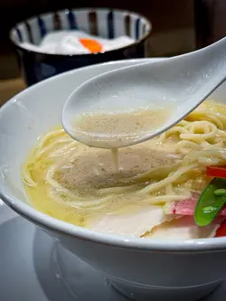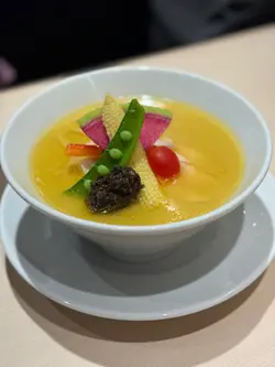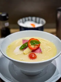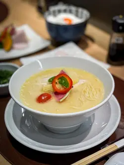 《銀座 篝 - 尖沙咀》原來雞白湯可以咁濃郁架😍前排睇雜誌見有介紹呢一間日本過江龍既拉麵店,每逢搭飛機番香港前都會食多碗拉麵先走💁🏻♀️呢度同樣由日本人坐陣監控品質,重點係喺正我返工地點附近,趁住一個人食lunch唔知食咩好,就一於去食雞白湯拉麵啦🥰本人其實都好鍾意雞白湯,平時喺香港食到嘅通常都比較水一啲,但係呢度製作嘅雞白湯濃郁到掛湯,有啲似忌廉汁嘅口感,今次我就揀咗松露雞白湯拉麵加玉子 $133 + $38,另外仲叫咗份煎餃子 $38 同埋炙燒叉燒飯 $38煎餃子作為前菜幾惹味,一共有五隻,如果一個人食略嫌有啲多,如果之後可以推出一人份就好啦💁🏻♀️個人覺得第一次食應該要食原味雞白湯,因為松露雞白湯拉麵個松露油味道都幾霸道,會搶咗少少本身雞湯嘅香氣,但係如果你同我一樣都好鍾意食松露嘅產品,呢一款拉麵嘅松露味道絕對係夠晒,個麵係用咗粗太麵製作,口感比較爽口同埋掛汁,個擺盤其實係靚的,但係有幾款配菜我都麻麻哋鍾意😆個麵會另外配咗薑蓉同埋炸蒜俾你提升味道嘅層次,食完個麵就可以好似日本人咁加個叉燒飯,用埋雞白湯拌勻再食,咁就唔會浪費咗咁濃郁嘅湯啦嗰炙燒叉燒飯比想像中淡味,如果唔係配埋個醋汁的話本身唔夠惹味,我自己個人一開頭係配醋汁,後再用雞白湯汁拌勻再食,叉燒唔係入口,即溶嗰一種口感,比較似我哋平時食到嘅豬肉片感覺,個人覺得拉麵比個飯出色😌…查看更多