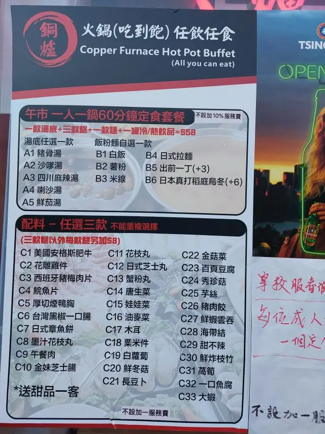 昨晚都差不多9:15pm和兩個朋友,經過囍逸樓下,遠處望到呢條橫街門口有個坐地白色底黑色字寫(放題)招牌都幾搶眼,好似人在日本橫濱感覺,咁我們就入去試下呢間裝修得好有個人風格嘅(銅爐火鍋放題)椰子雞煲超好味(個人感覺)一般放題有嘅,佢都有,特別D嘅就係台灣火鍋配料選擇多😋,炸物勁好味😋,(大蝦)都係任食真係少見,呢次真係返本😂🤣冷靜,4,5款啤酒任飲🍻嘩!真係任飲,今晚過癮囉!🤪😇安格斯肥牛都係任食每人唔使二百紋,對比山長水遠出九龍食火鍋放題,近近哋好過啦😁真心雖然係平價嘢,講(食物質素)超值(服務)🕺👍(環境)👍(衛生)👍整體超值,百分百再來,用個心去做嘅小店,加油🎃🎄…查看更多