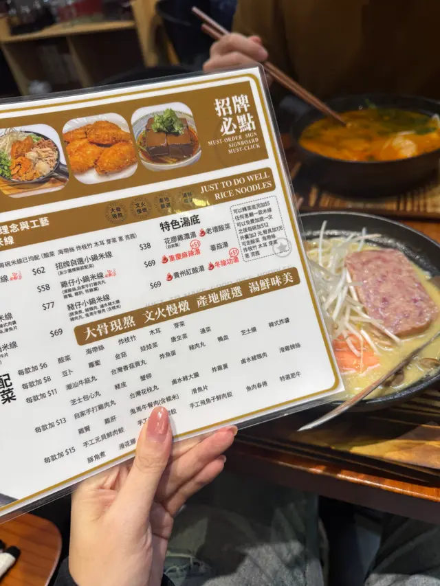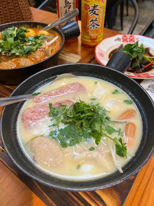 最近發現咗呢間新開嘅米線🔍,食完又真係幾好味喎😱,推薦可以試吓呢間高質小鍋米線🐷豬仔小鍋米線 $69本身包左好多配料🤩,有豚角煮🍖、鬼馬午餐肉🐽、豬頸肉、豬肉丸🧆、滷水豬大腸、炸枝竹等,揀左重慶麻辣湯+$1每樣配料嘅質素都好好,而且份量充足🫃🏻豚角煮肥瘦均勻、煮得入味😜鬼馬午餐肉,係餐廳特登搜羅返嚟,有糯米嘅午餐肉,咬落煙靭非常特別🉐,豬大腸滷得入味、夠晒肥美。米線用銅鍋裝住上枱熱辣辣🌡️,麻辣湯底夠晒惹味香辣🐥雞仔小鍋米線 $69有自家手打雞肉丸🐤、滑雞絲、雞翼、雞腎、雞肝等,揀左花膠雞濃湯💕湯底飲落有少少膠質,而且真係好有鮮雞味👍🏻除咗雞絲、雞翼呢啲配料,仲少有地有雞腎同雞肝😱,除咗好食,仲令湯底更加提鮮♨️🈵冬天食暖心又暖胃🍗淄博脆炸雞翼/尖椒麻辣皮蛋$25晚市優惠叫米線加$25有1個小食同飲品🥤淄博燒烤係來自中國北方燒烤,除左孜然,仲有辣椒粉既香,雞翼炸得好脆🐣,但入面仍然保持到肉汁,香辣惹味😋👍🏻皮蛋🥚酸酸辣辣,夠晒開🥢金磚炸豆卜 $24炸豆卜,開半炸到脆卜卜,每件都炸到乾身,點豆辦醬或者浸湯都好食🥰😉overall:配料同小食款式多👀,而且普遍食物質素都唔錯👍🏻有別一般連鎖米線店嘅口味之餘,有自家製口味嘅感覺🏠同埋真心好足料,每碗都大大碗,欣賞同銅鍋夠哂熱辣辣👍🏻推介大家一試…查看更多