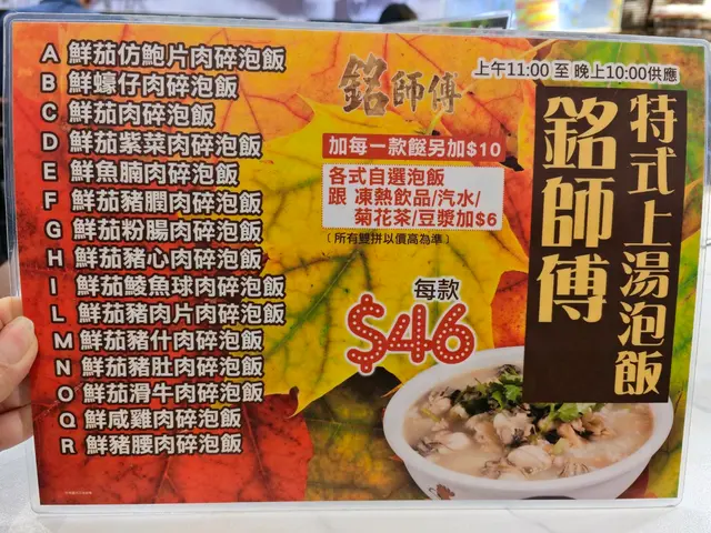 銘師傅粥麵專家 (柏苑) (屯门) 网址: https://s.openrice.com/QrLS0EB0900 地址: 香港屯門新墟德政圍39號柏苑地下5號舖 电话: +852 37058621