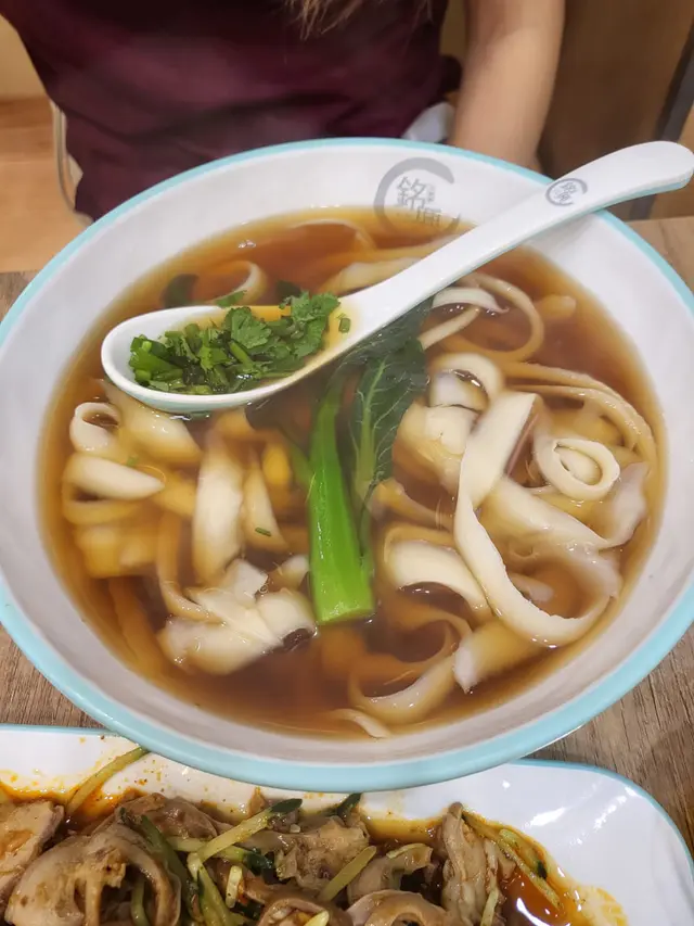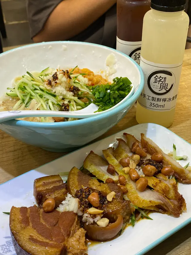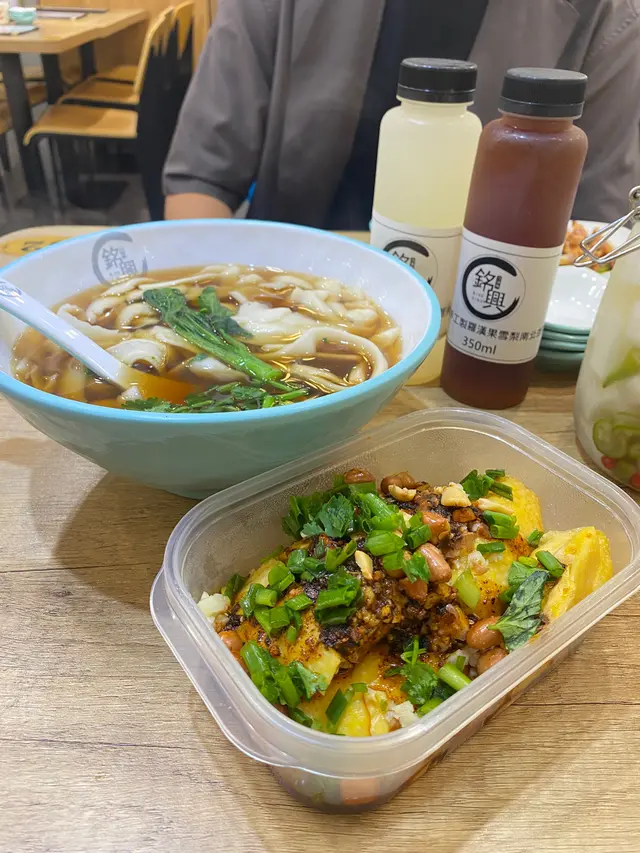 天氣涼涼地,最岩食熱辣辣既湯麵🔥銘興都幾多分店,今次去旺角嘅分店,幾抵食同埋質素都唔錯🐥花雕醉雞刀削麵 $68+$10轉左熱拌,熱拌有辣醬、蒜蔥🧄、胡麻醬、青瓜絲🥒、蔥花、花生等,花雕醉雞份量好多啖啖肉,酒味足🍶仲有隻花雕溏心蛋,見當日好多人都係叫花雕雞😂熱拌刀削麵夠味,食辣既朋友可以自己再加辣油🌶️🌶️麻辣牛筋腩豬大腸刀削麵 $56+$15要左雙拼牛筋腩所以加$15,餸既份量都幾足,要左小辣唔算好辣🌶️湯既刀削麵熱辣辣,湯底夠味,刀削麵每條大小都有D唔同,食落有口感👍🏻🥚涼拌皮蛋 $35皮蛋蛋黃都有d流心,正常發揮🙌🏻🥤手工製竹蔗茅根+$8/手工製鮮檸冰糖薏米+$82款都甜度低,唔錯🖐🏻如果叫咗辣嘢可以解辣😎Overall每枱都有醃蘿蔔任食,刀削麵可揀湯、冷拌、熱撈,總有款岩心水,如果食真心推薦醉雞🥰查看更多