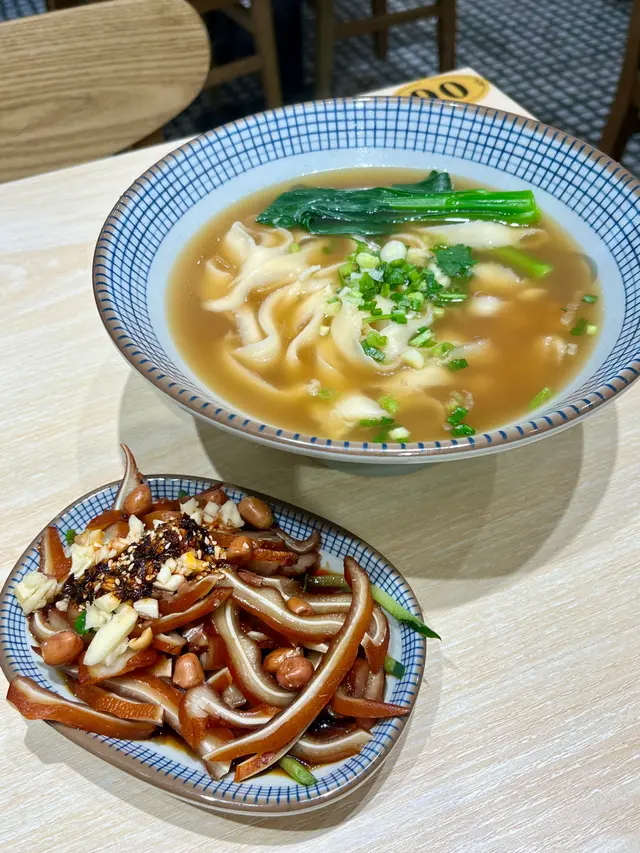 呢間黃埔銘興山西刀削麵搬咗大舖之後依然人頭湧湧,人氣爆棚,真係好食到不得了~嚟到記得出去𢳂免費酸蘿蔔,酸香惹味,一食就停唔到口!😋1️⃣ 花雕醉雞流心蛋刀削麵(轉熱拌 +$10、走辣)熱拌由胡麻醬同擔擔醬混合而成,配合煙靭嘅刀削麵,簡直天衣無縫!花雕醉雞份量足夠,花雕汁調得啱啱好,唔會過鹹,花雕酒味香濃。流心蛋一咬開,香滑爆漿,口腔滿足感十足~🥚🍗2️⃣ 郊外油菜 $25清爽解膩嘅菜心,入口清清喉。仲幫你分好菜葉同菜莖,任你自由選擇~🥦3️⃣ 涼拌黑木耳(小辣)$35酸辣汁勁惹味,黑木耳份量十足又爽口,再加上花生、青瓜、蒜頭,完美黃金組合,食得好過癮~🌶️🥒4️⃣ 涼拌海蜇小食(小辣)$45用返同黑木耳一樣嘅酸辣汁同配料,但海蜇就更彈牙爽口,食落勁過癮,完全停唔到手~🐙🔥5️⃣ 炸春卷 $35蔬菜春卷炸到外皮香脆,咬落卡滋卡滋,好味嘅小食,熱辣辣食最佳~🥢6️⃣ 蒜泥牛𦟌 $65超大份量,一上枱即刻吸睛!牛𦟌厚薄適中,有咬口但唔韌,蒜泥落得大方,啖啖蒜香喺口裡面爆開,超正~🧄🥩7️⃣ 凍奶茶 $4少冰少甜,奶味香濃,飲落解辣又消暑,配餸一流~🧋8️⃣ 零糖可樂 $4食咁多餸,配返罐零糖可樂就最爽快又解膩~🥤💰 兩個人食到飽飽哋只係 $288,仲冇加一,真係抵到爛!捧住個肚離開都覺得幸福~😆…查看更多