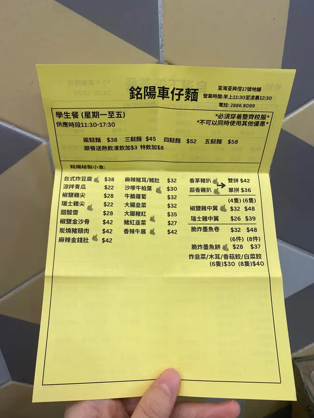 銘陽車仔麵 (荃湾) 网址: https://s.openrice.com/QrLS0WuqA00 地址: 香港荃灣荃興徑17號地下C號舖 电话: +852 28868099