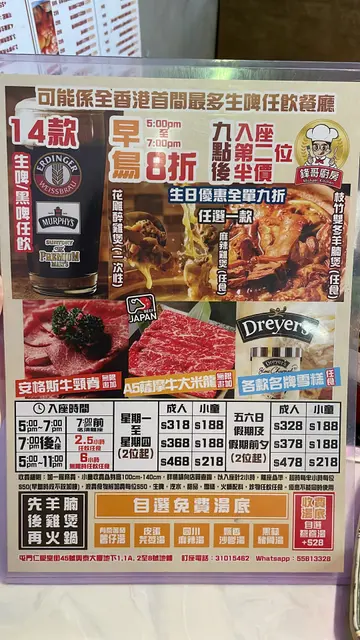 今晚肥妹仔约咗男朋友喺屯门度打边炉,食鸡煲同烤鱼。峰哥厨房不嬲都人头涌涌,因为佢嘅性价比超高,一个价钱可以食足三样嘢,而且质素仲要非常高添!去到肥妹仔首先叫咗一个微辣嘅烤鱼,条鱼好大条,外皮炸到酥脆,然后再浸浓郁嘅汤底。配料有薯粉,芽菜,萝卜土豆片,非常之丰富。鱼肉肉质实,喺高质!食完烤鱼之后,我哋再叫咗一个微辣嘅鸡煲。鸡系超级新鲜嘅鸡,咬落去爽口弹牙,我哋虽然叫咗微辣,但系其实都好辣,所以钟意食辣嘅朋友一定要嚟试,非常之惹味!之后就到咗肥妹期待已久嘅打边炉环节,肥妹仔叫咗个芫荽皮蛋汤底,未打边炉之前饮咗一啖汤,真系好清新嘅芫荽味,系平时饮汤𠮶一只,好好饮。而佢嘅牛系超级高质素,有日本和牛同埋澳洲和牛食。我够胆讲佢嘅牛肉系完全赢晒其他连锁牛肉打边炉店,钟意食牛嘅朋友嚟呢度食多几转一定回本!最癫嘅系除咗佢嘅牛肉非常高质,佢就有任食海鲜,有虾,蟹,鲍鱼,蛏子,元贝,沙白,你讲得出嘅佢都有提供,仲要系任食!肥妹仔同男朋友食咗好几转鲍鱼同埋蛏子,完全冇沙,吐得非常之干净,虾肉爽口弹牙,另外仲有鱼食。钟意食海鲜嘅朋友唔理系你损失!嘢饮同埋雪糕系超级多款选择,仲要系M字头雪糕无限食,肥妹仔觉得以$400一位可以食咁多,真系好感动,大家一定要嚟食!…查看更多
