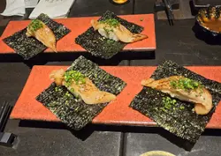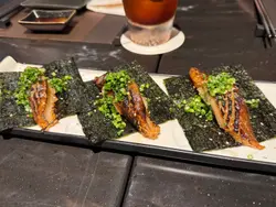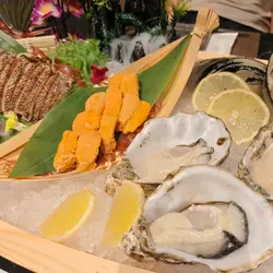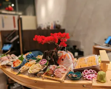 ✨新舖地点旺中带静,店内装修布置型格特色,也可因应人数而独立间格厢房空间,三五知己联谊聚餐,特别舒适畅快🥰🤩最喜爱每日新鲜空运到舖的鱼生海产刺身🥰✨今日鲜点亮品日本海胆,鲜甜滑口,入口融化👍🏻🦪生蚝,黑寄贝🐠原条黑睦鱼刺身🐟原条鲂𫚒鱼全部鲜味无穷,口感丰满😍🦐火炙虎虾寿司放入干冰仙气地上枱,好睇又好食 😍✨锦师傅鱼生太卷特色有创意, 有heart之作🐟左口鱼边海苔包这款必须上枱即食,趁著紫菜尚脆口时,包著一起入口吃,鱼油香四溢,口感滋味无穷😍🐷荔枝豚肉卷荔枝肉多汁夹集豚肉,满口juicy感觉, 味道绝配 👍🏻🥭香芒蟹肉酥皮PIZZA呢个配搭口味清新,不会感觉太腻🍜鲷鱼汤海鲜稻庭手打乌冬鱼汤味浓🎂日本三文鱼寿司蛋糕🩷心型寿司上,铺满厚厚的三文鱼,造型标致😍🥳最后出场的惊喜,满满仪式感💝后记,锦师傅的用心制作,及员工有礼殷勤招呼的态度,已是我们朋友聚餐的回头之选🥰…查看更多