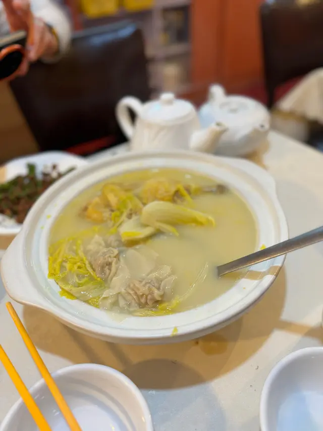 今日同屋企人食上海菜,依間我由細個食到大,每年都總會去幾次😂今次3個人食左5樣野,超飽😋1. 砂鍋雲吞雞湯(半隻) $112- 半隻都已經好大份,仲有大約6粒雲吞,個湯好鮮!好好飲,我一次過都飲左3碗😆😆2. 招牌小籠包(4隻) $48-皮簿,豬肉juicy,個湯汁都鮮味嘅!正常發揮,唔會話好特別🙈3. 蔥爆羊肉(配薄餅6件) $108-羊肉味係有嘅,不過唔濃,份量正常,連埋薄餅食都幾入味。不過坦白講就係喊左啲😅4. 乾煸四季豆 $70-四季豆都偏喊少少,不過係好食嘅!同埋份量幾夠!5. 火腿烤箱方(配方餅3件) $96-依個係我最期待嘅,不過已經同以前食嘅差左好遠!以前塊火腿係依家嘅一倍!米通都厚依家一倍。。。雖然味道仲係咁好食,但係價錢貴左,份量少左,所以唔抵食!👎🏽*茶位$6/人; 仲有10%服務費*…查看更多