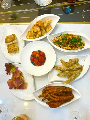 温泉蛋葱伴烟熏鲜鲍鱼 ⭐️⭐️⭐️⭐️⭐️呢一个烟熏鲍鱼温泉蛋 完全系啱啱好每一种味道都行得出 烟熏唔会遮盖原本食物嘅味道(特色六小碟)有6小碟菜式特别系呢一个 话梅冻小茄 ⭐️⭐️⭐️⭐️⭐️因为其他小食都系煎炸, 呢一个话梅小茄 嘅新鲜冲淡左油腻冰冻鲜甜 芝麻虾多士 呢个没有太大惊喜鸡蛋焗蚝仔砵 我已经忘记咗呢一个嘅味道金沙炸鱼皮 爽口嘅炸鱼皮煎焗墨鱼角 相比起其他呢个冇咁出色鲍鱼汁炆鸡脚 大厨话系用头先嘅鲍鱼汁炆鸡脚 我感觉到有丰富嘅骨胶原招牌花雕蒸海红蟹⭐️⭐️⭐️⭐️⭐️呢一个𩠌菜,又系佢嘅招牌菜特色出色特别系记得一定一定要点佢嘅醋唔点佢嘅醋,可以食到蟹嘅鲜味 仲有花雕嘅香味点左可以食到醋的甜味平时钟意原汁原味嘅我,我都差唔多,食咗两匙羹醋梅菜芯蒸龙趸斑旗⭐️⭐️⭐️⭐️⭐️好新鲜嘅龙趸班旗我只系记得佢淡淡的骨胶原一哥烧云腿伴头抽煎海虾⭐️⭐️⭐️⭐️⭐️海虾新鲜不在话下,个重点系烧云腿好食到 不能用言语表达佢好似食紧天妇罗番薯, 但其实佢系 唔咸嘅金华火腿 (就系碟菜式,上边粉红色𠮶一块)Juicy 香口好味 龙井茶叶熏鲜鸡⭐️⭐️⭐️⭐️⭐️首先一摆落口 就食出淡淡的烟熏味道之后有一种好香嘅清香 原来系茶叶烟熏只鸡系高水平,连鸡胸肉都系好滑好Juice米皇金汤浸时蔬由于其他𩠌菜都非常吸睛,变成呢一个没有太大特别生炒腊味糯米饭⭐️⭐️唔系好识评论糯米饭,平时少食唔系好油腻,粒粒饭分明每位$768免收加一服务费免收开瓶费…Read More