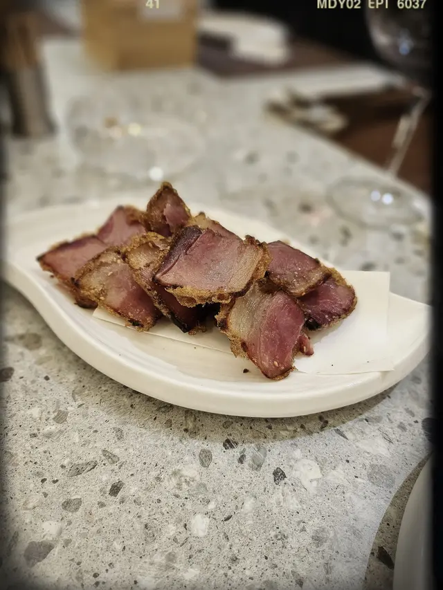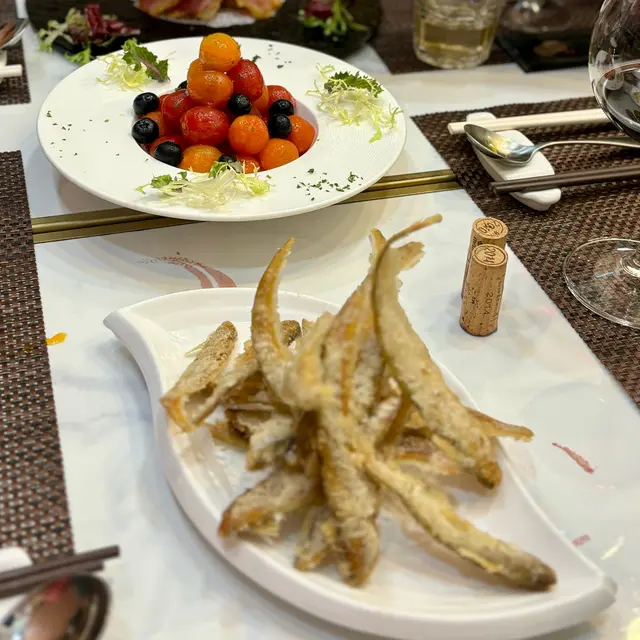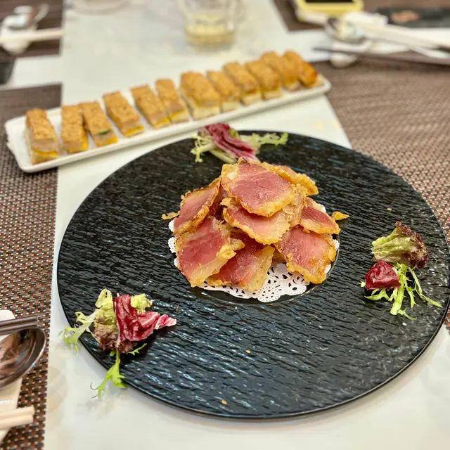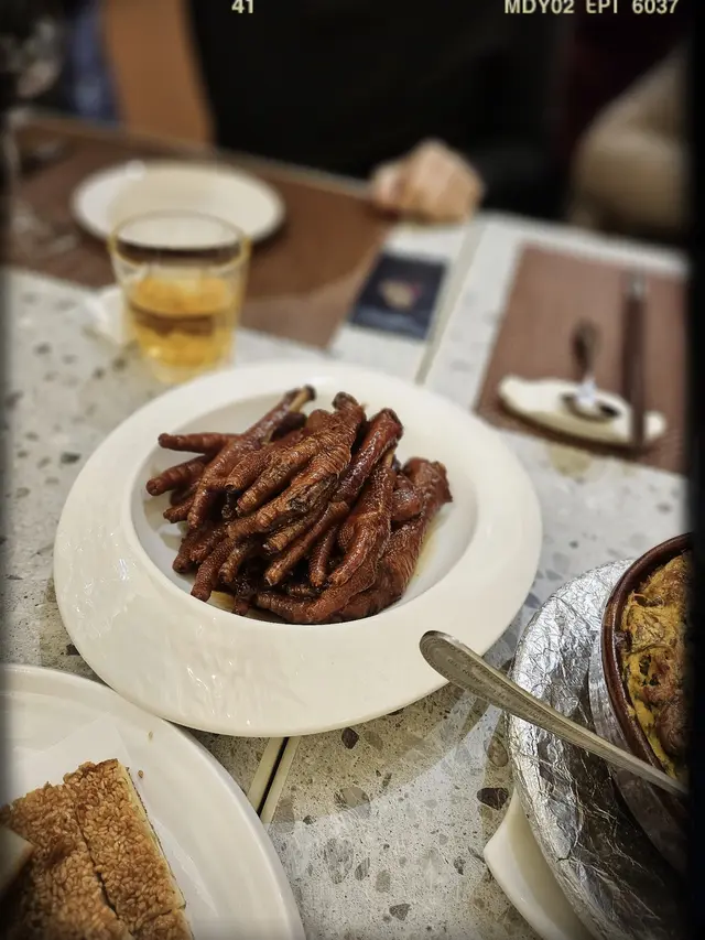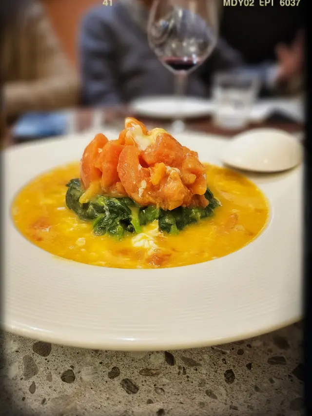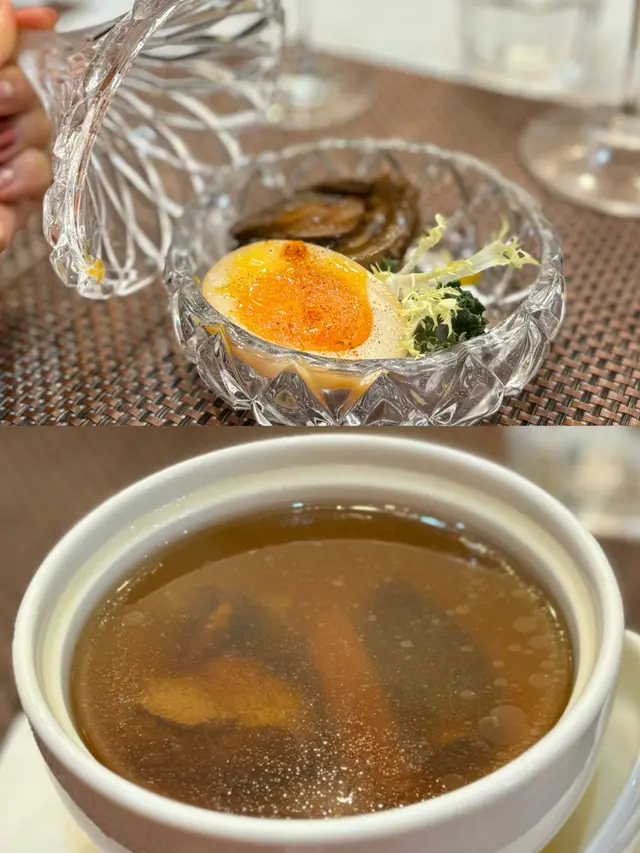 Been meaning to try for so long- but difficult to book since there were only 2-3 tables. Open kitchen divided the 2 areas. Helmed by chef Chris who trained at 海都, then moved onto own TST private kitchen Chef at Home.Here’s what we had. 溫泉蛋伴紅燜鮮鮑魚- loved the smoky aroma wafting out as soon as the lid was lifted. A luxurious opening dish, pairing the silken richness of a 63°C onsen egg with a tender, umami-laden abalone. 羊肚菌五指毛桃燉豬展湯- pork shank was fall-apart tender, while the morel mushrooms added an earthy depth to the subtle herbal aroma, making this a nourishing, layered broth. 話梅小凍茄- refreshing subtle tangy bursts鹽燒鳳尾魚- loved the crispy skin, softened bones, intense umami and smoky saltiness.芝麻蝦多士- Chef’s timing to make these was remarkable- he made sure we were ready and waiting when he delivered the fresh crisp and golden pieces to our table. 一哥燒雲腿- the ham, deep fried then sliced, tasted incredibly sweet and not oily at all. 鮑魚汁炫雞腳- a textural marvel; with meat falling falling-off-the-bone, lacquered in a rich, gelatinous abalone sauce.青瓜花- a special treat from Chef- as these are as rare as it gets. Wouldn’t get these anymore when the weather turns hotter and gets more humid.金沙炸魚皮- rich, crunchy, and utterly addictive.鮮果咕嚕肉- crispy, golden pork pieces coated in a glossy, balanced sweet-and-sour sauce, without the usual syrupy heaviness. The pork remained juicy within its crisp shell. Love the apple pieces.招牌花雕蒸海紅蟹- crab was steamed just right, its natural sweetness enhanced by the aromatic floral notes of the aged Chinese wine. The egg white base, cooked in the crab juices, was silky and infused with pure umami.Chef gave us some udon to soak up the sauce.梅菜芯滑豆腐蒸龍躉斑球- the grouper was tender and flaky, gently steamed over silken tofu. The preserved mui choy brought a salty-sweet complexity to the delicate dish.蝦米醬甜椒焗海蝦煲- sizzling hot prawns coated in a rich, house-made shrimp paste, arrived aromatic and bubbling in a traditional claypot. 銀紙銅鑼焗鮮雞- tender, juicy chicken from Yuen Long, lightly seasoned, encased in shimmering silver foil and roasted to perfection with purple onions etc. The foil locked in moisture, creating a succulent interior with each bite bursting with umami richness- even without the soy sauce. 銀芽豉油皇炒麵- perfectly wok-fried noodles with just the right sear, coated in fragrant soy sauce. The bean sprouts added crunch, and the overall flavor was smoky, savory, and addictive- a humble dish executed with polish.清炒菜芯苗- crisp, clean bites. Choice of fruit juices as dessert- picked the beetroot, which was refreshing. In summary: a triumph of modern Cantonese cooking, blending banquet-style grandeur with seasonal ingredients, soulful flavors and precise technique. Particularly impressive was Chef’s heartwarming desire to delight through texture, aroma, and legacy.…查看更多