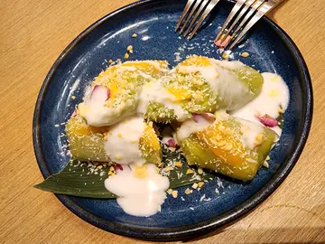 椰青&斑斓椰汁糕椰青糕系类似大菜糕嘅质地,清甜嘅椰子水味,花兰椰汁糕就香斑斓同椰汁味,食一个甜品真系晚餐嘅一个完美句号