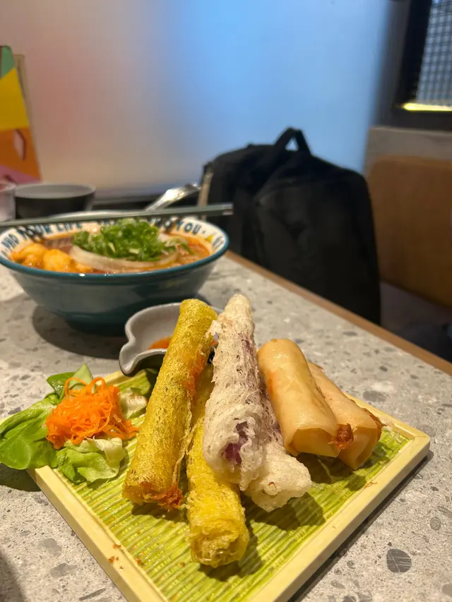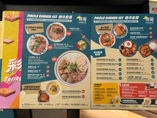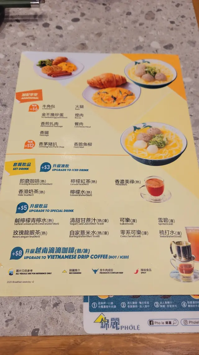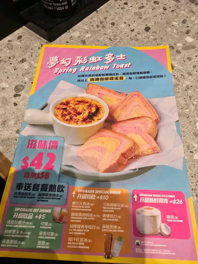 屋企太少人,出街食更方便。想食清啲,湯麵係一個選擇,突然發現呢間分店都開左一段時間,仲未幫襯,所以落去食越南河粉 ,原來越南本店,更加係2023同24年必比登推介 。睇下餐牌先胡志明綜合河粉 $88 可以揀生牛肉或者小鮮嫩肉,因為唔知咩叫小鮮嫩肉,所以揀左,原來係無咩肥嘅牛肉片,另外仲有、熟牛肉同牛丸。湯底好清又夠味,河粉好滑,咩都未落飲一啖,之後再加九層塔、青檸汁同芽菜,感受唔同嘅口味。熟牛肉係牛腩,切到咁大件,應該已經本地化左,不過呢個方法更加吸牛骨湯,味道更足,又唔會太鞋,係一個好改變,但牛丸就唔算太特別啦!絕配油炸鬼(即炸半條)[$8推廣價]炸得好香脆,原來浸牛骨湯,吸曬啲味,半脆半軟,感覺好正,正過配粥。酥炸軟殼蟹 (2隻) $66軟殼蟹好大隻,大到一定要切件,呢個價錢真希好抵。軟殼蟹炸得好酥脆,仲有少少胡椒粉,所以就算無點甜酸汁,都完全唔會酸。牛油果米紙卷 (2件)$40傳統米紙卷包住沙律菜,可能有肉類或者蝦,加啲檬粉,不過呢個裡面完全無澱粉,直接用牛油果加沙律菜,取代檬粉嘅角色,非常creamy ,點埋魚露,清新好多。紫薯春卷(2件) +$26米網包住紫薯,非常鬆化香脆,原來裡面紫薯餡係甜嘅,整體好夾。越式蒜蓉牛油雞翼(2件)+$10呢度嘅牛油雞翼非常鬆化,但粉唔算厚,仲比平時多左蒜蓉香味,更惹味。鹹檸檬青檸梳打 +$10成日都會叫青檸梳打,貪佢夠清新。原來加埋鹹檸,感覺又唔同,少少鹹係會開胃啲,又更加解膩。越式椰子咖啡沙冰 +$22見到個椰子系列好想試,原來佢唔係椰子咖啡,係椰子+咖啡,飲下面嘅部分,係有奶香嘅越南咖啡,比較香甜。咬到沙冰上面嘅椰絲椰糖就即刻夠味啦!夢幻彩虹多士 (配滴滴咖啡雞蛋醬)$42多士本身無味道嘅,需要點醬。多士烘得好脆,蛋漿本身好香甜仲有椰香味,味道本身已經好足夠,底下嘅咖啡少少苦味,純粹用來平衡上面嘅甜,令佢更有層次,好食過茶木 。小計 $312服務費10% $31.2 總計 $343…查看更多
