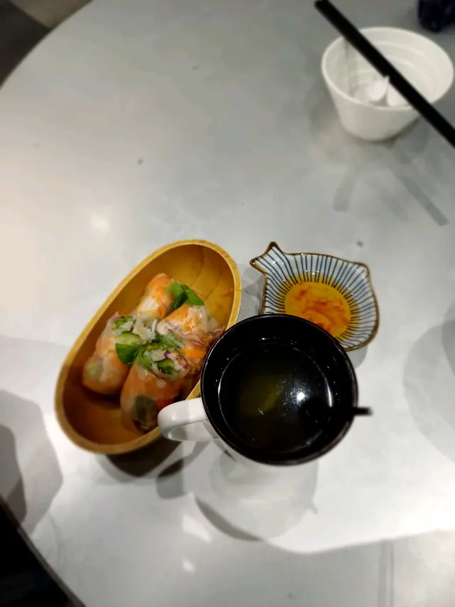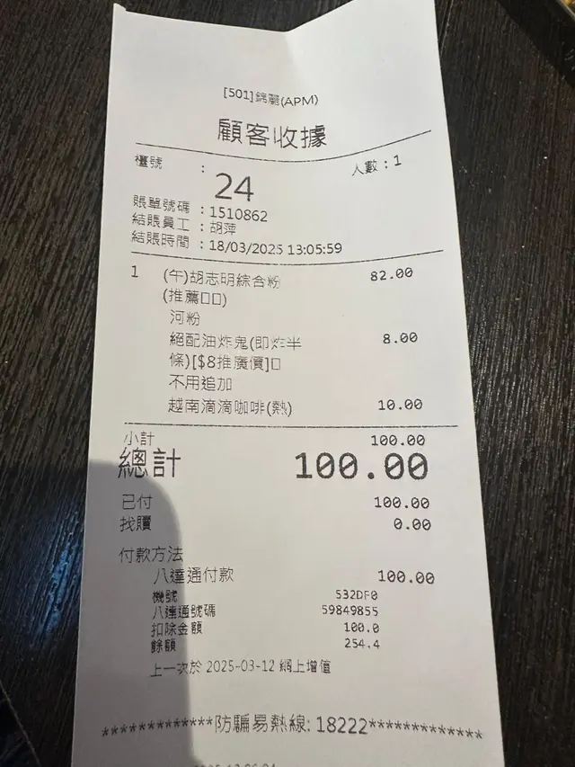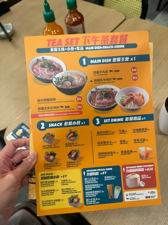 真係好耐冇食錦麗,總覺得餐牌變化不大...今次經過APM 突然想再食﹐發現餐牌多左新款有點驚喜!:)一行二人點左兩個餐:香茅豬扒雞湯河粉 $66,加$8 配熱龍眼蜜,再加$26配越式蒜蓉牛油雞翼(2件)。第一次叫河粉配雞湯,覺得個湯好好飲,滿滿雞湯味,好滋補,我差點飲晒成碗湯!