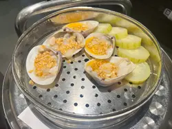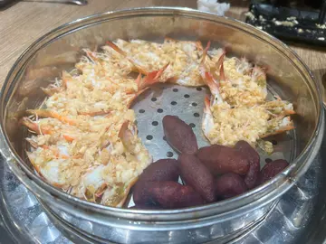 人均约$300 新鲜足料的自选蒸海鲜套餐我们点了龙虾及蚬套餐6款配料方便选了海边虾,鲍鱼,扇贝,虾滑酿翠玉瓜及鱿鱼肠粉全部也可以自选不同的烹调方法店员会帮忙烹调并负责计时坐着等待便可以吃压轴的蒸饭也可以自由选择8款配料我们选了牛舌,虾酱猪颈肉,蒜香排骨,土鱿丝,粟米,芋头,鸡软骨肉饼非常好吃又特别! 满足的一餐!查看更多