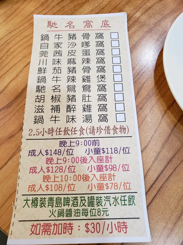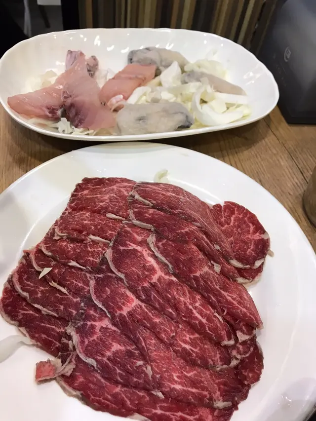 今日幾位好友一起到呢間鍋牛打火鍋,服務一如既往的好,上菜速度甚快,我們嗌了一個鴛鴦湯底,湯的味道十分之濃郁。因為是任食嘅關係,我們點左好多東西,一開頭唔理甘多!點了好幾碟午肉(我和我的朋友門都係食肉獸) 頭碟上陣的係特選牛肉+高級肥牛,特選牛肉顏色白裡透紅,吃落去甚有𡁻頭,同時食得出十分強烈的牛肉味(比我在牛X吃的$358和牛好吃的多)在吃塊高級肥牛,拌和沙嗲湯底一口咬嚼,我心入面不感諗:我成五十歲人未食過甘好味的肥牛,同我在佳X買的垃圾完全唔一样!油脂分佈甚均,同時都吃得出師傅的刀工!除了牛肉,我也推薦各位試試這間店的牛爽肉!顧名思義,即是爽的牛肉,拌和清湯+特製火鍋鼓油一起咬嚼,油脂嘅香除即係你口腔入面暴開,呢塊清盈✅透嘅牛令我諗起了家鄉的清牛肉火鍋(我是潮汕人) 因為是任食,我地都叫了很多注名的食材,有牛餐肉,猪肺,肉丸等等,全都是上等食材!尤其是午餐肉,很像我早前到漢城吃的(明洞賣雪糕对面個間部長鍋),總体來說,冇得彈!我們共坐了3個半鈡頭,侍應佢地仍然對我們態度十分良好,雖然超鈡,等冇一句怨言!好難得同身边三5⃣知己一齊同枱食飯,不亦樂乎,我推介各位可以係度边食美食,边聚舊!…查看更多