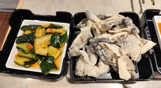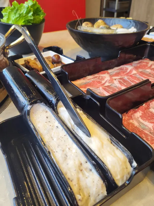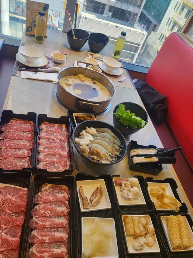 天氣轉涼了,老公提議打邊爐,呢間鍋霸主打台式,我地中午入坐唔係好多人,兩人都係卡位,夠晒闊落,我地就點左Lv2套餐,因為除左豬同牛,呢度仲有好多台式野,用QR code點菜,先落左個湯底,簡左藥膳湯藥柳子雞煲,黎到個湯好香濃,仲有一層香香椰子油。落單點了美國安格斯牛肉,無激素豬肉,仲有好多手工丸,手工三寶丸,墨魚丸黑松露墨魚丸,麻辣牛丸,豬肉丸,墨魚滑,每樣都有試。仲有好多特式野,炸魚皮,黑魚柳,鴨血,手工冬菇豬軟骨水餃等等,每樣都好食。仲有海鮮,沙白,花膠,海蝦,滷水雞腎同豬大腸都係我心水,叫左幾次,佢啲炸野都好出色,炸花枝丸完全係台灣水準,仲可以落唔同調味粉,即叫即炸,掂呀!調料區選擇都好多,冷熱飲區全,凍飲有手工冷泡茶及多款汽水,仲有名牌子雪糕任食,同埋唔同既雪糕雪條。呢間火窩店俾人感覺好台式,特別係啲窩底同手工食材,啲員工收野出餐都好快而且友善,有位男職員好細心,留意到我地想整走啲泡,佢提醒我地係椰油,而且上熟食又會提醒,好照顧客人需要。…查看更多