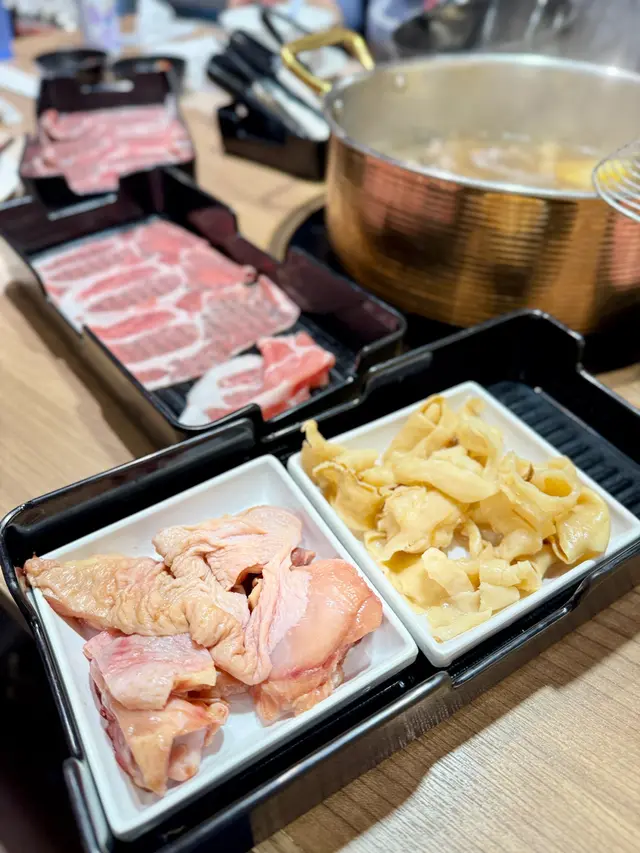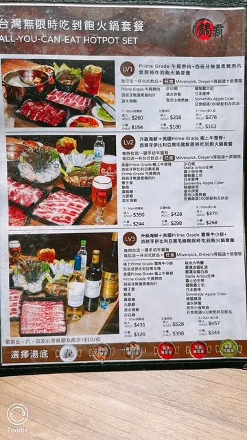 最近成日食火鍋,今次揀左間120分鐘任食台式火鍋,分別有lv 1, 2 及3,價錢$278-488,我地揀左lv2,因為除左任食牛肉,仲有任食海鮮,最吸引我的是九節蝦、蟶子皇、鮑魚、廣島蠔......,飲品更有啤酒、韓國燒酒及台式特飲。20款湯底真係款款都想食,所以揀左鴛鴦湯底,田園蕃茄濃湯牛肉,有濃濃蕃茄鮮甜味,加上牛肉的肉香,好正。日本壽喜燒湯,又香又甜好夾肉類。掃碼下單任食,調味、飲品及雪糕是自助任食。美國Prime Grade 極上牛頸脊,肉質鮮嫩,油花均勻,口感彈牙多肉汁,滿口牛脂香氣。Prime Grade 牛肩胛肉,中間有條筋,肉質結實,但切薄片涮熟,口感柔軟,牛味濃郁。西班牙伊比利亞黑毛豬,估唔到肉質嫩嫩彈彈,冇渣又滑溜。海鮮好吸引,比較少火鍋任食有齊幾款海鮮任食,而且高質。九節蝦非常爽口彈牙,蝦味突出。海蝦鮮嫩爽彈,肉質細緻。蟶子皇好大隻,而且又爽又脆,嫩滑多汁。鮑魚柔軟易咬,新鮮好味。廣島蠔脹卜卜好肥美,又滑又嫩,蠔汁鮮蠔膏濃,仲要唔腥。沙白蜆飽滿無沙,爽口鮮甜。火鍋配料都有好多選擇,黑毛肚特別爽脆,鴨血腍滑,手工牛丸夠彈牙,三星蔥貢丸好重蔥香,爆醬濃芝牛丸超多拉絲芝士好正,手工黑松露墨魚滑爽口彈牙又鮮味,稻庭烏冬又滑又煙靭。羽衣甘藍吸哂湯汁又唔靭,好好味,唐生菜新鮮爽脆,響鈴唔油仲吸湯汁好味道。Movenpick 士多啤梨味,酸酸甜甜又有果肉,雲尼拿味好香甜滑溜,勁多雲尼拿籽,好香好正。Dreyer's 芒果雪糕,好香芒果味,質感綿滑,好好味。…查看更多
