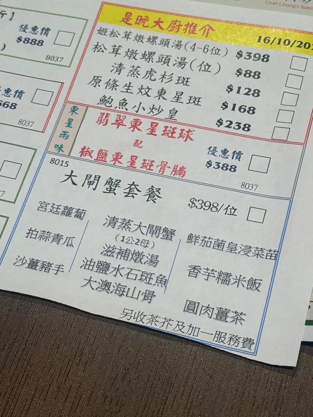 秋風起,蟹正肥!又到咗食大閘蟹季節啦!!呢個皇者歸來·大閘蟹套餐 1人有3隻清蒸大閘蟹(1公2母)、3款餐前小食、滋補燉湯、4款小菜、最後以桂圓薑茶結尾,性價比高又滿足!✨ 🦀大閘蟹🦀✨蟹膏滿滿,蟹香撲鼻,清蒸最能食出原汁原味,最愛沾鎮江香醋,酸味令整體更香更滋味,帶有微微鮮甜回甘味道,令人心滿意足!🥢前菜分別為宮廷蘿蔔,拍蒜青瓜和沙薑豬手最喜歡豬手的沙薑香氣、軟糯和豐富膠原蛋白的口感🍲 滋補燉湯材料豐富;螺片、雞腳、菇菌、豬肉等等,燉湯足料鮮甜,香氣陣陣,無味精唔口渴,飲完暖晒~🐟油鹽水石斑魚魚肉嫩滑鮮美,無腥味。簡單調味更能保留石斑魚的原味和甜味🍖大澳海山骨蝦醬香氣撲鼻,外酥內嫩,鹹鮮香醇,好惹味!🥬鮮茄珍菌泡菜苗菜苗酸鮮爽口,吸入濃湯的鮮甜味🍚香芋糯米飯米飯粒粒分明,香氣十足,香濃的芋頭粒與糯米帶來軟糯、Q彈且富有嚼勁的口感,更有飽足感! 🍵桂圓薑茶甜中帶辣,溫潤芳香,配蟹一流!飲完非常暖胃…查看更多