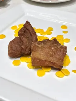 钟厨位于香港铜锣湾时代广场,是一间主打点心和粤菜的餐厅,装潢设计带有现代感,临近中秋节,大闸蟹快进入最肥美的时段。餐厅最近推出大闸蟹套餐,价钱相宜质量高,值得一试!滋补炖汤:玛卡螺头汤的味道清甜,带有浓郁的原汁原味,且有消滞、清热、祛湿的功效,喝起来十分清爽。风味小食:宫廷萝卜味道酸辣爽口。拍蒜青瓜,爽脆带蒜香。沙姜炆猪手软糯入味,猪皮爽而有弹性。大澳海山骨:选用精排骨,外皮酥脆,内里肉质嫩滑,带有虾酱的浓郁鲜香。油盐水石斑件味道清新,带有海鱼的自然鲜甜。大闸蟹上乘又肥美,三只份量分别是两只蟹乸,一只蟹公。蟹黄和蟹膏丰满且油脂细腻,吃起来会有甜甜且回甘的味道。鲜茄珍菌泡菜苗:这道菜以浓汤的形式呈现,味道酸鲜爽口,结合了鲜茄的新鲜甜味,爽脆的菜苗及珍菌的丰富口感和鲜味。香芋糯米饭:糯米的软糯香甜与芋头的绵密松软相结合,带有天然的芋香味,口感丰富而湿润。加入腊味、虾米、葱花等配料,使整体味道层次丰富。圆肉姜茶味道温润甘甜,带有圆肉和杞子自然的淡淡果香和甜味,融合了姜的辛辣口感,饮用姜茶能温中散寒,帮助驱寒解毒,促进消化,减轻食蟹后的不适症状。餐厅奉送甜品:蛋白杏仁茶味道香滑且美味,带有天然杏仁的清香和甜味。…查看更多