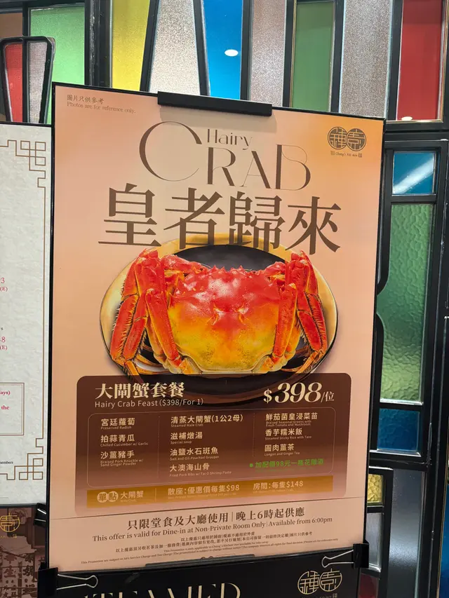 🤩 WOW!!!!! 大閘蟹季來了!!!大家大快朵頤未呢!!!??? 今晚我就去咗銅鑼灣鍾廚試一人份大閘蟹宴套餐!!!只係 $398 一位咋 茶位加一另計!!!不過呢個價錢食到咁多野算唔錯抵食了!!!而且呢間全部都係即叫即整!!!🫰🏻🫰🏻相當有誠意! 職員服務都好好好細心!❤️加$98 就有一支咸亨花雕酒借花獻佛比埋爸爸飲🤣🤣🤣 ✌🏻✌🏻✌🏻順帶一提呢間乳鴿都好味😋!最近做緊買一送一,都幾大隻又多肉多汁😛小菜:宮廷蘿蔔 (辣辣地幾好食)拍蒜青瓜 (蒜味重)沙薑豬手 (充滿膠質唔錯!)·油鹽水石斑件石斑魚肉又滑又香! 好味😋!·大閘蟹 (兩隻蟹乸、一隻蟹公)兩款都爆曬膏🤤🤤🤤🤤 朋友拆得好專業!我學到好多野了!我個人比較中意蟹乸 中意食蟹膏😍真係好惹味!😙·大澳海山骨炸得香酥!齒頰留香!·鮮茄珍菌泡菜苗整個都超鮮甜! 好中意食油麥菜!·滋補燉湯今晚係雞腳豬展湯 😚 呢啲天氣飲好滋潤又好飲!無加味精!·香芋糯米飯呢啲天氣食熱辣辣嘅糯米飯好正!!聞到都好香~~~·圓肉薑茶食完大閘蟹後飲驅寒一流!非常重薑味🤘🏻🤘🏻…查看更多