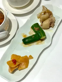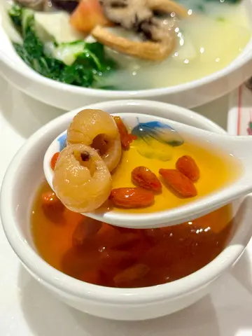 冬瓜蟹肉海皇灌汤饺,呢度嘅灌汤饺会用小炉热住,饮嘅时候唔怕冻左!碗内有灌汤饺子、虾肉、冬瓜粒,汤底清甜,加埋红醋更惹味!