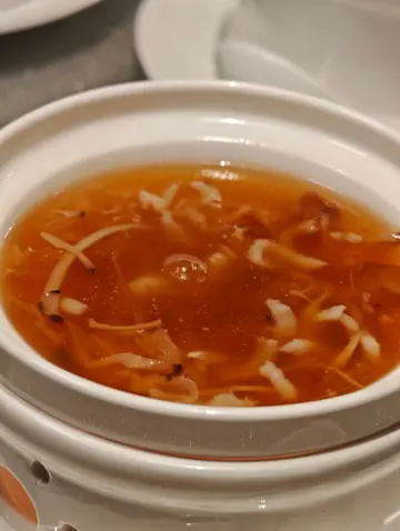 🔶首先迎来的是色彩缤纷的江南五小碟🧫,每道小菜丰盛得让人眼前一亮:拍蒜青瓜爽口清新,陈醋云耳酸酸甜甜,宫廷萝卜脆脆清甜,沙姜猪手肉质丰腴,鸡丝粉皮则滑顺入味,这五小碟的搭配,可以说令人食欲大开!❤️🔶随著小菜的清新开胃,期待的重头戏也在缓缓迫近🤩🤩因为大闸蟹需要一些时间来蒸熟,我哋就食住其他小菜~ 特选XO酱花枝冰山蚌🐚味道滋味浓厚,鲜甜的海味让人一试成主顾;再来,陈皮榄角蒸龙趸件,鱼肉嫩滑、香气扑鼻;鲜茄菌王蒸菜苗🌱,汁多味美,口感清爽。🔺特别值得一提的是瑶柱花胶海参羹,这一人一锅的设计不仅保证了热腾腾的口感,浓厚的汤底让人每一口都感到心暖暖的,喝下去真的是特别舒适!🔶然后,当重头戏大闸蟹🦀🦀登场时,完全系打卡点🤩🤩🤩一开蟹壳,蟹膏满溢,鲜香的咸酸味道令人无法抗拒,搭配蟹肉的鲜甜,再加一点醋,味道层次更加突出。特别贴心的是,餐厅还为每位食客准备了手套,非常贴心🔶吃过蟹后,接下来的古铜芝麻鸡🍗也是不容错过。每一块鸡肉都撒满香喷喷的芝麻,外酥内嫩,非常美味,轻轻一咬,便能感受到满满的幸福感,好好食!