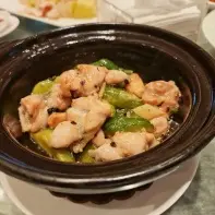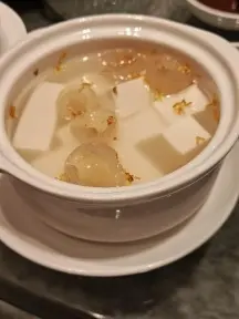 This famous restaurant is traditionally known for its roasted goose, but since the dispute of the Kam family which led to the separation of the brothers opening their own restaurants, I have not visited them. Today, I came to Yung Kee to see what has changed over the years.The décor has a modern and neat design, totally not the type you would expect from a Chinese restaurant that has opened since 1942. Seated at a table at the far end, with windows on the side offering a glimpse on Wellington Street, it is pleasant and comfortable.We have a combination of the signature dishes plus the seasonal chef’s selection, starting with their famous Signature Charcoal Roasted Goose 正宗炭燒黑鬃鵝 ($300). This normal portion is good for 2-3 people, with the goose not fatty and the meat quite tender. The taste on its own is nothing special, but after adding a bit of plum sauce it is better. I found the skin is not crisp and honestly, I think the quality of its goose has deteriorated, and inferior to Kam’s Roast Goose or the ones in Sham Tseng.Next, we have Almond and Pig’s Lung Soup 杏汁滋補豬肺湯 ($180 each). The soup has a delicate almond note, with the lungs washed thoroughly so there is no weird taste. There are other ingredients like gingko, pork, and bean curd sheet added too. While it tastes good, it is less delicious than another traditional restaurant Lin Heung Tea House that I recently visited. And in my opinion the soup will be better if it can be served steaming hot.From the seasonal menu this dish caught my attention. The Stir-fried Frog’s Stomach 皇冠翡翠戲藏龍 ($380) is using the special ingredient - frog’s stomach, which looks like large pearls, with a nice crunchy bite. Together with asparagus, gingko, yellow ear, brown fungus, pine nuts and Tonkin jasmine, it has a nice, delicate taste and is a great dish for summer. After the slight disappointment from the first two courses, this one helps to rescue some marks.Another dish on the main menu is Braised Garoupa's Belly with Yanmin Sauce 銀棯醬炆鮮斑腩 ($450). Served in a sizzling hot pot, the large grouper flesh is tender and seasoned well, highly fragrant from plenty of shallot and ginger, and not greasy nor does it feel too oily. The yanmin sauce has provided slight acidity to help balance the flavours. Fantastic and this is my favorite one on the night.We have also Fried Rice with Mini Crab Roe and Ginger 禮雲子薑米炒飯 ($320). Another of my favourites, the fried rice is very nicely cooked, not oily and with each grain distinct, the chef has added the prized mini crab roes, which must have taken meticulous effort to get from the small crabs, to give an amazing umami taste. With some small pieces of chopped ginger and scallions to add fragrance and balance, the portion is good for four bowls, and we basically finished them all in no time.For dessert, my wife has Red Bean Sweet Soup with Aged Tangerine Peel 遠年陳皮紅豆沙 ($55) while I go for Black Sesame Sweet Soup 生磨綿滑芝麻糊 ($50). Both sweet soups are nice, not too sweet, with good fragrance from quality aged tangerine peel and the grinded sesame respectively.Service is good, with the staff attentive, but again, as I have shared frequently, should introduce more details to allow the diners to learn and appreciate the dishes more. The bill on the night is $2,172. Overall, still a nice Chinese restaurant but given its fame I believe there are more expectations, and the roasted goose is honestly a bit disappointing.…查看更多