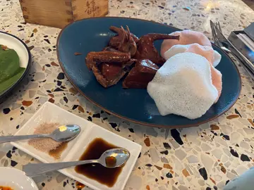 今年生日,男朋友问想食咩,食咗几年西餐/Omakase,今年想转下口味食返中菜。要求系:环境要靓、食物要有质素、但又唔想太旧式。男朋友 book 咗 K11 MUSEA 呢间「镛镛」,完全 meet 晒我啲 requirement!两个人叫咗几样嘢。招牌烧鹅系必点,一咬落去啲鹅油香爆出嚟,鹅肉又够嫩,高水准;个中式牛柳粒牛肉好 😋,个汁酸酸甜甜好开胃。最惊喜系个惹味避风塘茄子,估唔到茄子可以整到咁香口,蒜蓉同辣椒碎好惹味,但又唔会太油腻,我哋清晒成碟。成餐饭食得好开心,服务都好好,想揾间环境同食物都兼顾到嘅中菜庆祝纪念日或者生日,呢间真心推介!…查看更多