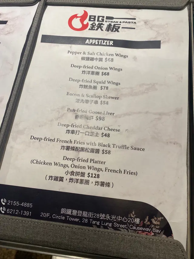 鐵板一 (铜锣湾) 网上订位即赚Rice Dollars 网址: https://s.openrice.com/QrLS0dWCB00 地址: 香港銅鑼灣登龍街28號永光中心20樓 电话: +852 21554885