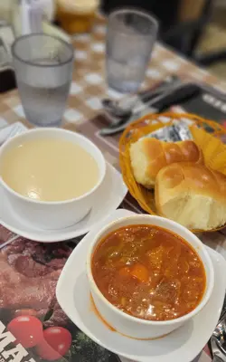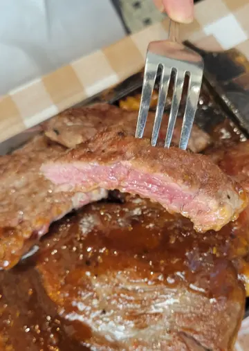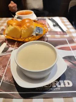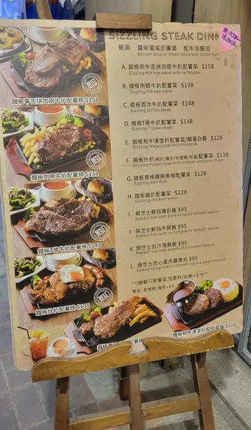 今日约左中同食饭突然间好想食地道港式扒房揾番中学年代的集体回忆同学介绍在太子通菜街有间地道港式嘅冰室扒房装修好复古 用我钟意既格仔枱布 好耐无见灯光柔和 配合铁板滋滋的声音营造出浓厚的港式扒房氛围餐汤有红汤或者白汤罗宋汤 传统罗宋汤番茄 洋葱 牛肉配搭 香气满满好入味 酸甜浓郁入口暖胃 且开胃解油腻 忌廉汤 奶香浓滑 入口暖呼呼天气转凉冬日必点跟餐包牛油除咗涂满餐包沾了白汤忌廉味会更浓郁扒餐都跟薯菜唔系普通薯气而系波浪粗薯条我地都系牛魔王谂都唔驶谂就叫左西冷同T骨//铁板西冷牛扒 五成熟 $148//店员会在上餐后询问你要烧汁定系黑椒汁然后提示系要用纸巾遮挡著随之而来是铁板滋滋的声音配上烧汁西冷肉质厚实 软淋而不失嚼劲牛肉味浓郁 香气满满五成熟火候恰到好处肉色呈嫩粉红 锁住肉汁入口肉味鲜甜//铁板T骨牛扒 五成熟 $148//T骨份量十足特别骨边肉质更添风味同样都是五成熟 保持肉质嫩滑黑椒汁与牛油香交织 口感层次丰富 岩晒喜欢大啖大啖食既牛魔王如我甜品+饮品甜品有回忆系列之一的啫喱菠萝味加入了杂果仲可以按个人口味喜好加入花奶这绝对是童年回忆的味道餐茶可以配冻热咖啡奶茶柠茶柠水…查看更多
