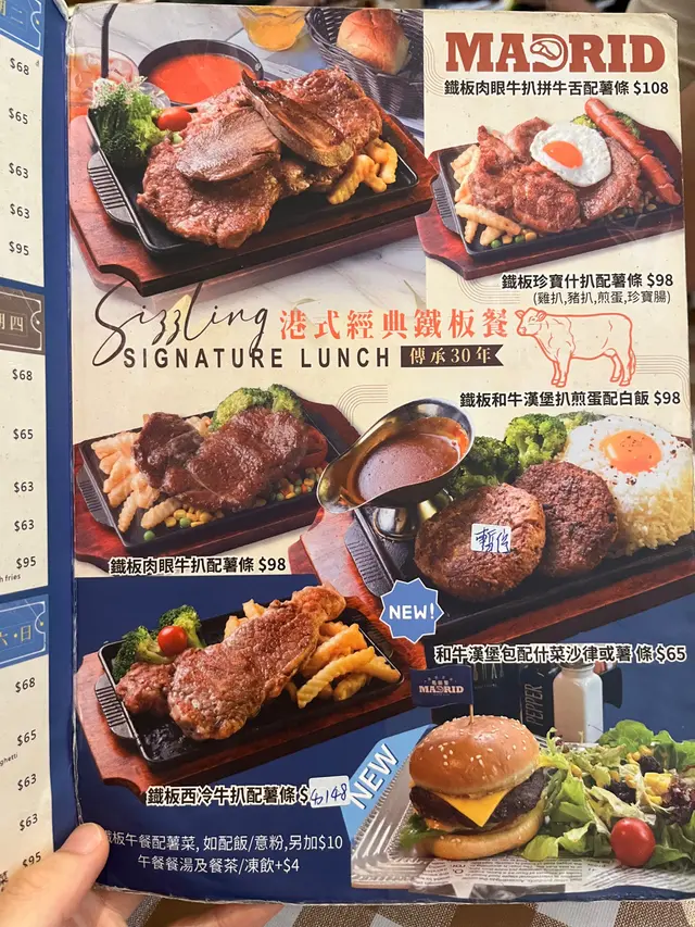 好大份對得住價錢牛扒叫咗7成熟中間粉嫩嘅顏色睇見都流晒口水因為有薯條鋪底所以唔會被鐵板熱到變更熟係真‧七成熟﹗兩樣都好香嘅牛味而且好軟好入口鐵板珍寶什扒 $138有豬扒、雞扒、珍寶腸、煎蛋勁豐富嘅配搭MVP居然係煎蛋﹗流心蛋黃而燶邊好出色最後仲有啫喱叔叔會抱住一大盤啫喱同花奶出嚟問你要唔要花奶花奶超厚一層,勁開心係雜果啫喱~仲跟餐飲,凍飲加$4茶走同凍華田…查看更多