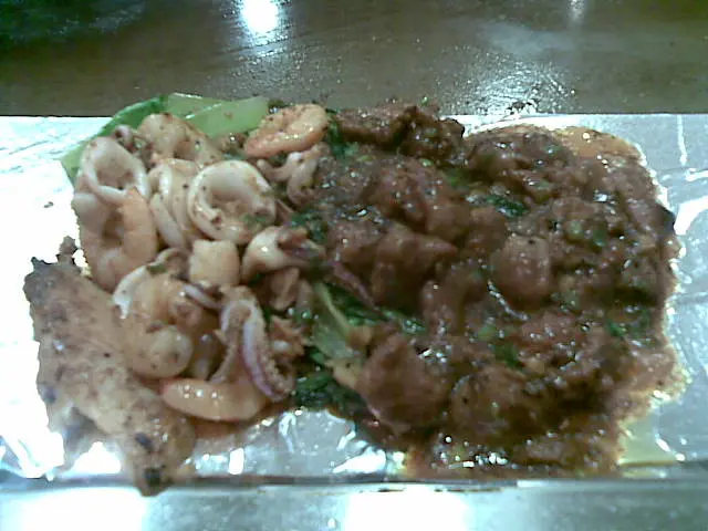 颱風過後,雪櫃並無太多存貨,於是倆口子到了奧海城搵食。 太太先前已想試試這間鐵板燒,今次路過見只有幾個人等位,便去試試。 食品主要靠黑椒同食鹽,再加獨沽一味o既黑椒汁調味。廚師話冇其他汁可以揀。 叫o左肉眼同魷魚,牛肉肉質都可以,以 $150下計算係咁,而且切成細粒都易入口。 魷魚就另有蒜粒一齊,味道合格啦。 菜因為佢一次過炒,見到其他食客o既有o的變焦,火候唔算 100 分,而鹽亦落得唔夠平均,同時菜尾o既根冇切走,賣相方面要扣分。 總括而言,呢個價錢都過得去,但要再去幫趁,真係要諗個理由。…查看更多