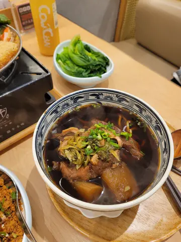 同朋友喺尖沙咀行到攰,专登嚟希尔顿中心呢间「铁牛」食台湾下午茶。餐厅光猛干净,卡位坐得舒服,倾计一流!▪️麻辣担担私房牛肉拌面:必食推介!一上枱就见到用心卤制嘅金钱腱,厚切软淋入味;仲有骨胶原爆炸嘅牛筋,炆到黏口又弹牙,个麻辣担担酱香浓惹味,捞匀食真系无得顶!绝对系总铺师级数嘅私房菜。▪️小时候排骨台湾便当:怀旧铁盒好有feel!排骨炸得香酥,肉质唔鞋,配埋卤肉饭同几款小菜,份量足又够地道。▪️木鱼炸豆腐:外脆内嫩,木鱼片喺上面跳舞,点甜辣酱食好开胃。▪️麻辣鸭血豆腐粉丝锅:鸭血滑溜冇异味,豆腐索尽汤汁,麻辣汤底香醇唔死辣,粉丝挂汤力强。🍹 饮品有心思▪️(冰)宜兰金桔柠檬蜜(少糖):金桔同柠檬嘅酸甜平衡得啱啱好,清新解腻,饮完成个口好refresh!▪️(冰)美式咖啡:正常发挥,咖啡味醇厚,用来提神不错。▪️卤肉饭嘅肥肉比例稍为多咗少少,怕肥嘅朋友可能要捞开食。总结:呢度食材新鲜有诚意,尤其系碗私房牛肉面,真系食到厨师嘅用心同手功!环境舒适,绝对会为咗骨胶原牛筋同金钱腱再encore!…查看更多