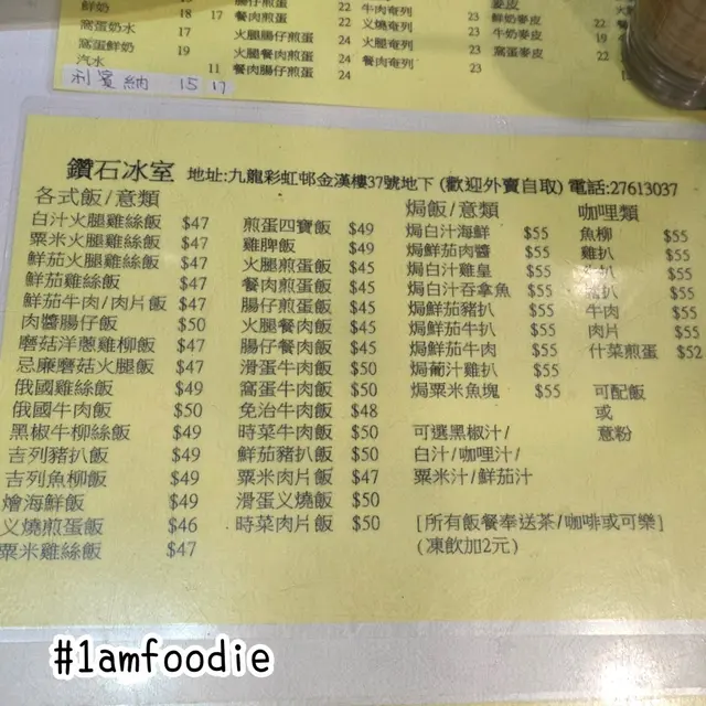 鑽石冰室 (彩虹) 网址: https://s.openrice.com/QrLS0pp4000 地址: 香港彩虹青楊路11號彩虹邨金漢樓37號地舖 电话: +852 27613037