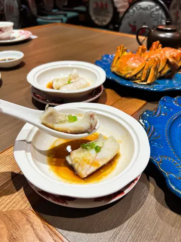 秋风起,蟹正肥!又到咗食大闸蟹季节啦!!呢个皇者归来·大闸蟹套餐 1人有3只清蒸大闸蟹(1公2母)、3款餐前小食、滋补炖汤、4款小菜、最后以桂圆姜茶结尾,性价比高又满足!✨ 🦀大闸蟹🦀✨蟹膏满满,蟹香扑鼻,清蒸最能食出原汁原味,最爱沾镇江香醋,酸味令整体更香更滋味,带有微微鲜甜回甘味道,令人心满意足!🥢前菜分别为宫廷萝卜,拍蒜青瓜和沙姜猪手最喜欢猪手的沙姜香气、软糯和丰富胶原蛋白的口感🍲 滋补炖汤材料丰富;螺片、鸡脚、菇菌、猪肉等等,炖汤足料鲜甜,香气阵阵,无味精唔口渴,饮完暖晒~🐟油盐水石斑鱼鱼肉嫩滑鲜美,无腥味。简单调味更能保留石斑鱼的原味和甜味🍖大澳海山骨虾酱香气扑鼻,外酥内嫩,咸鲜香醇,好惹味!🥬鲜茄珍菌泡菜苗菜苗酸鲜爽口,吸入浓汤的鲜甜味🍚香芋糯米饭米饭粒粒分明,香气十足,香浓的芋头粒与糯米带来软糯、Q弹且富有嚼劲的口感,更有饱足感! 🍵桂圆姜茶甜中带辣,温润芳香,配蟹一流!饮完非常暖胃…查看更多