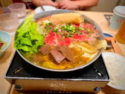 餐厅位置都几好揾,就系Donki再上少少 🤏平日晚市6、7点时间都仲有唔少吉位(希望大家多多支持香港餐厅 🥹)同朋友睇完餐牌后决定点两个主食、两个小食同埋两个嘢饮 🍱我就点左个铁牛臭臭锅(微辣)配牛肉同埋米粉几贴心既系店员比左个bib我食臭臭锅 😂真系开正我果范,因为我系经常食嘢整污糟衫既人 😝臭臭锅里面有好多料:豆腐、响铃、肉、菜、米血糕、粉丝,份量都唔少,食到好饱!微辣黎讲都唔算辣,钟意食辣既可以叫高level啲既辣度 朋友叫左柚子蜜香鸡排便当个样都十分唔错 👍 饭系卤肉饭,绝对无hea鸡排煎得香脆热辣,蘸上柚子蜜清新开胃 🤤even连旁边既小碟都几好食小香肠同埋盐酥小拼盘小香肠好贴心地已经精准舖好生蒜 🧄台湾小香肠黎讲一定要夹生蒜先好味!😋而盐酥拼盘里面系花枝丸、鸡块同埋甘薯条 🍠香口野失误率低,唔系话特别亮眼但系一定系稳打稳扎红豆珍珠奶茶🫘 同埋香浓巧克力🍫两杯都好好味👍 尤其是红豆珍珠奶茶里面有好多起沙红豆,珍珠香糯QQ以呢度唔系好多食客黎讲,坐既环境一流,方便朋友倾计!…查看更多