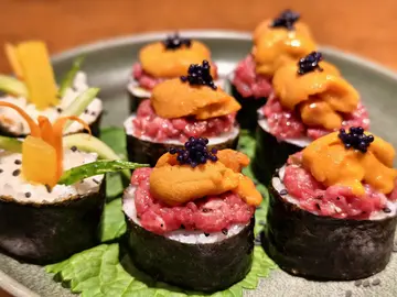 韩式生牛肉系韩食的特色食品,生牛肉拌特制酱油及生鸡蛋黄🍳,特别在加入了黑松露调味🍄🟫,每一啖都渗透出好重味的黑松露,仲有黑松露片,食得出系高档食材,加埋清甜雪梨条🍐,成份生牛肉真系美味致极,眼见每一枱客人都有点这款菜式,可见受欢迎程度👏🏻。