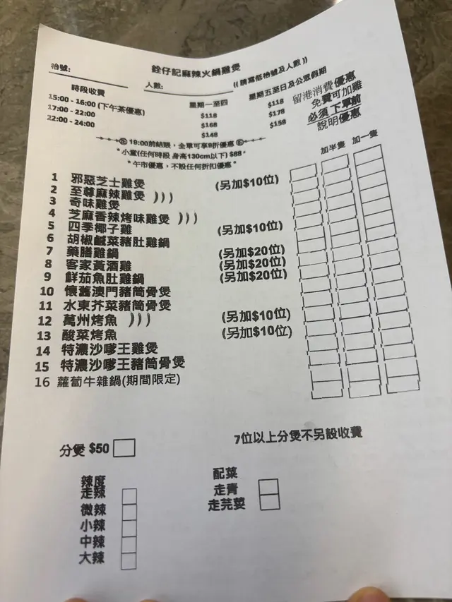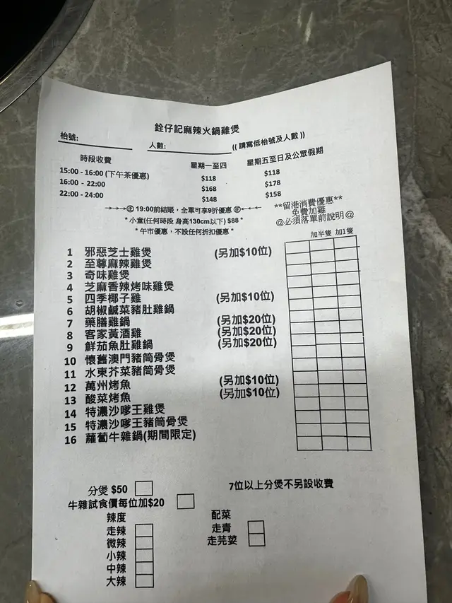 $168 街坊价先鸡煲后火锅任饮任食🤩有十几款鸡煲火锅底选择,拣咗胡椒咸菜猪肚鸡锅,鸡锅已经有半只鸡,店舖做紧优惠仲可以免费加多半只鸡,不过我哋2个人怕食唔哂就冇加到。先嚟个胡椒咸菜猪肚鸡锅,劲多料,钟意个胡椒咸菜猪肚锅底唔太浓,如果唔系就会盖过哂d食材味道;猪肚又冇煮到老哂👍🏻火锅前店员极推荐香辣爽脆鱼皮 $68俾我哋,鱼皮真系超爽脆,夹埋花生,少少麻辣,超好食,推荐💯火锅配料选择都算多,食材新鲜嘅,鲩鱼骨腩、猪膶、黑椒牛肉丸、猪大肠、鱼皮饺、酥炸鱼皮等等都好食,尤其即炸响铃,够酥脆,仲唔觉油腻😋要赞嘅系火锅配料系逐件order,食几多order几多件,可试多几样又唔驶怕食唔哂嘥嘢饮品选择都多,有啤酒、汽水、茶等等等等,仲有自家制嘅冇糖凤梨冷泡乌龙茶、竹蔗茅根同咁啱见到佢哋喺度煲紧蜂蜜柠檬百香果,赞👍🏻埋单时先知原来6月仲有佢哋7周年嘅77折promotion,超抵食绝对系大埔性价比超高嘅食店👍🏻…查看更多