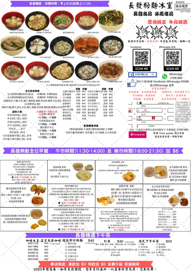 長發粉麵冰室 (长沙湾) 网址: https://s.openrice.com/QrLS0ZYi800 地址: 香港長沙灣青山道316號地舖 电话: +852 27081880